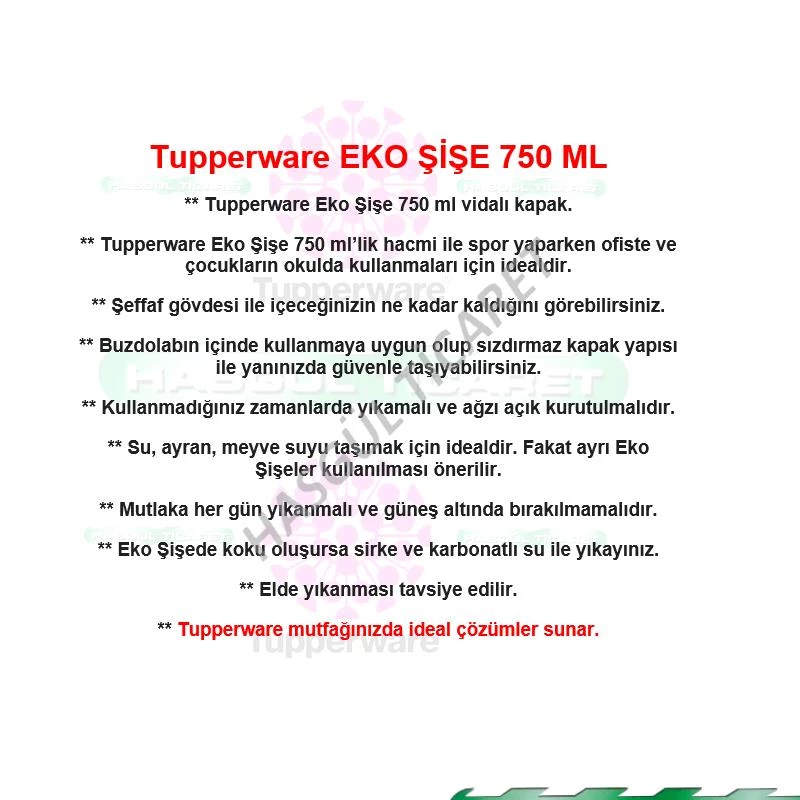 Tupperware EKO ŞİŞE 750 ML VİDALI KAPAK
