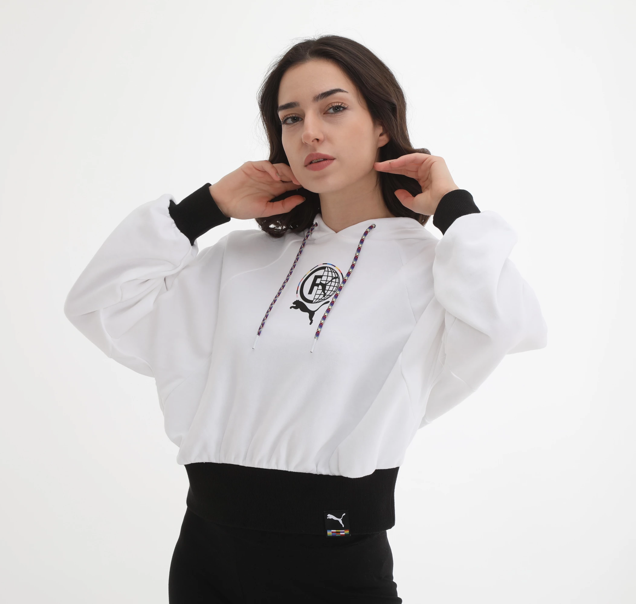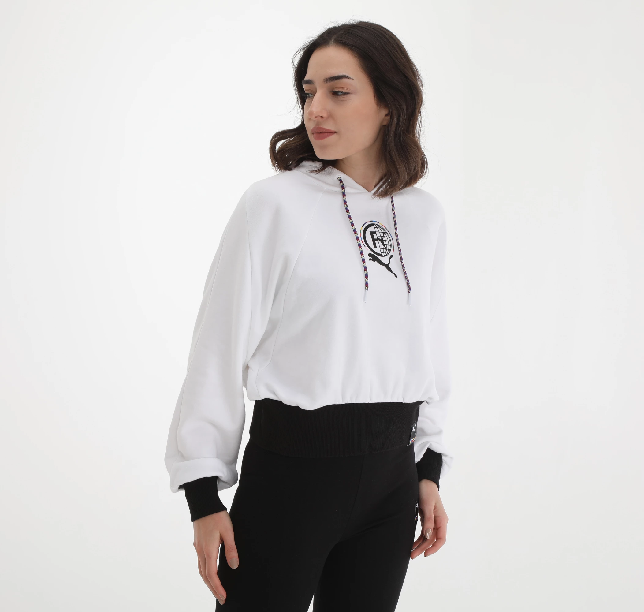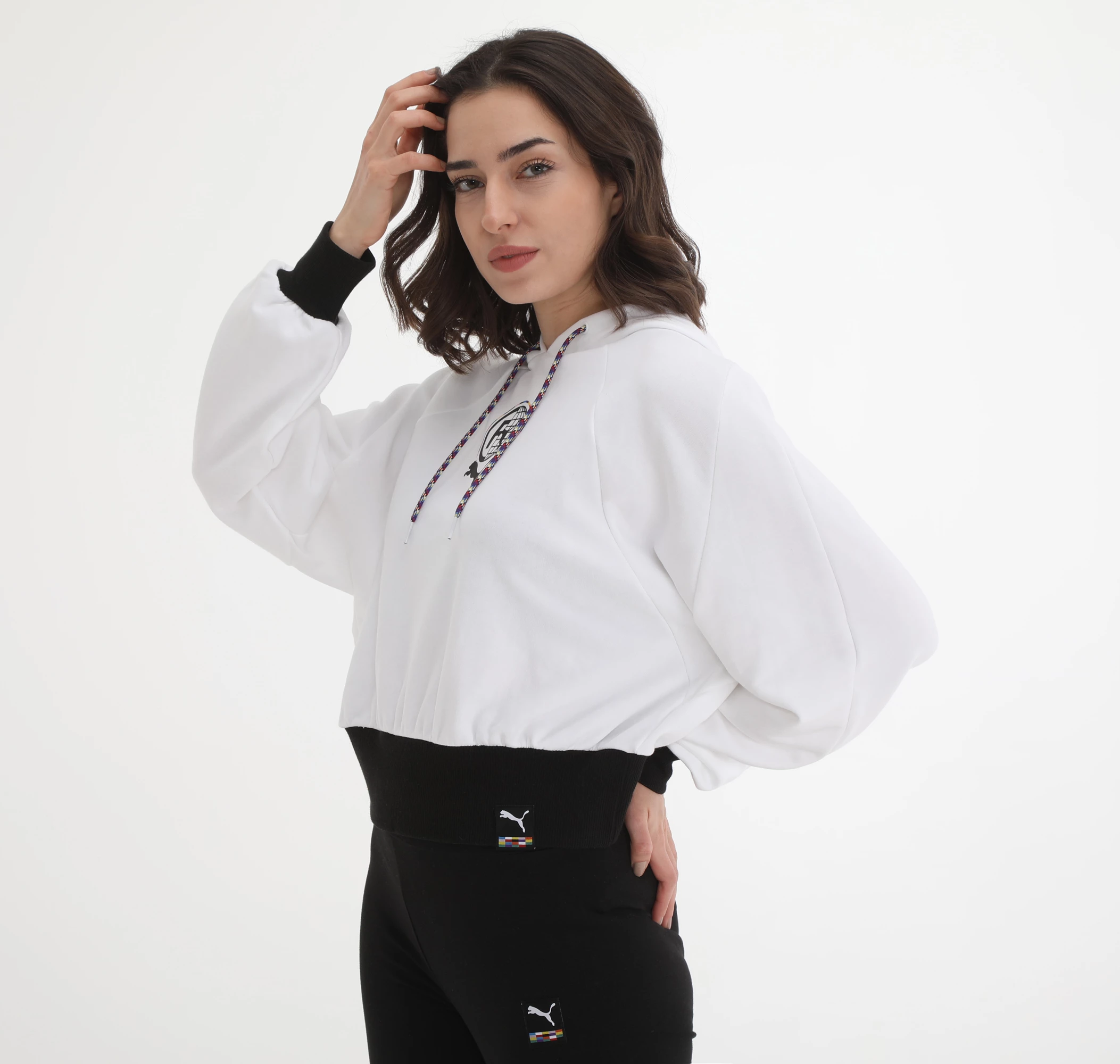 Needion - 599698-02 Puma Pı Hoodie Poppy Red Kadın Sweatshirt Beyaz Beyaz Siyah M
