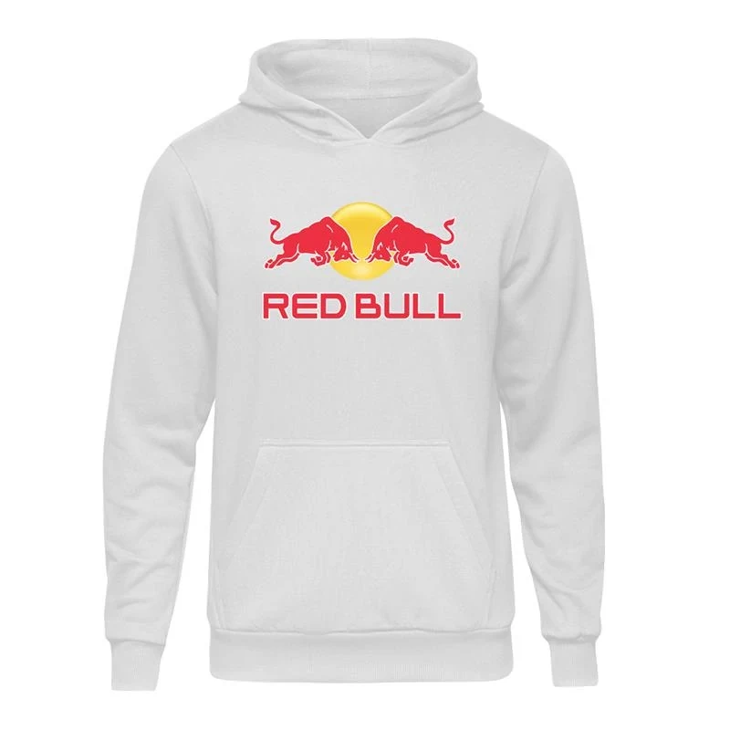 Needion - Casual Red Bull Logo Beyaz Kapşonlu Hoodie Unisex S Beyaz