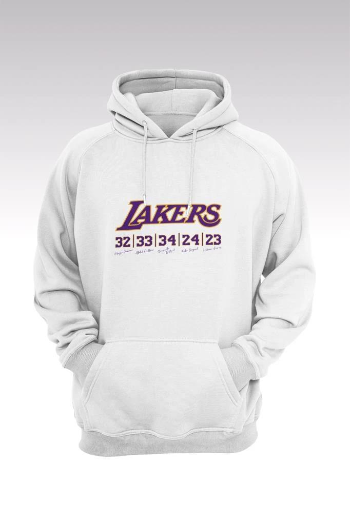 Lakers 107 Basklı Beyaz Kapüşonlu Sweatshırt M