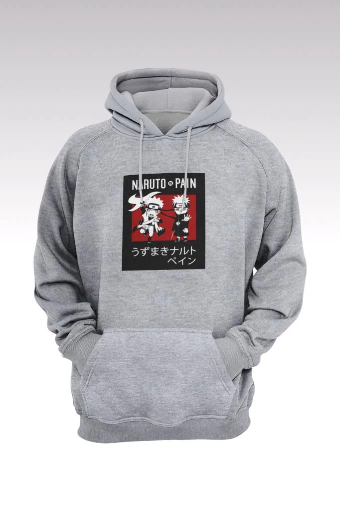 Naruto Anime 04 Gri Kapşonlu Sweatshirt - Hoodie L