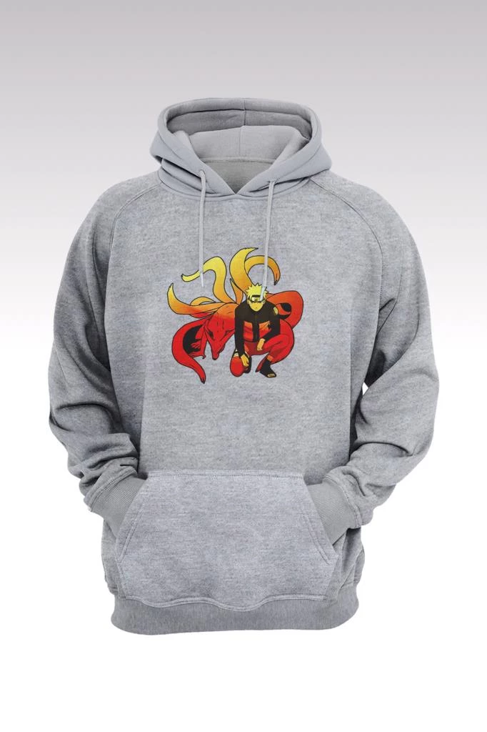 Naruto Anime 06 Gri Kapşonlu Sweatshirt - Hoodie L