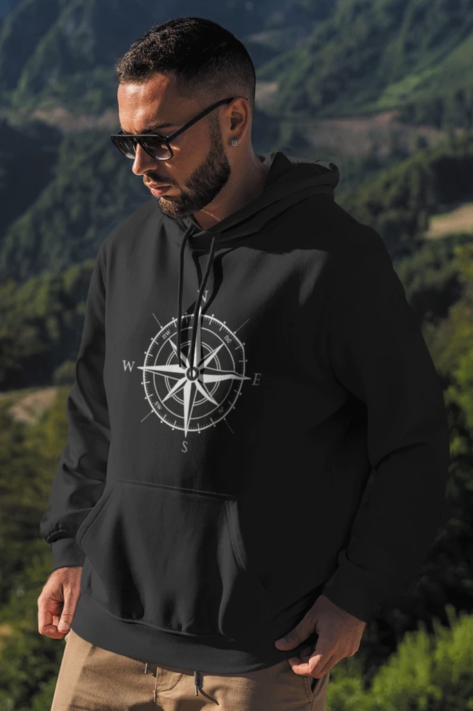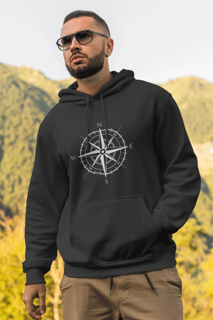 Needion - Pusula Siyah Erkek Kapşonlu Sweatshirt - Hoodie XXXL