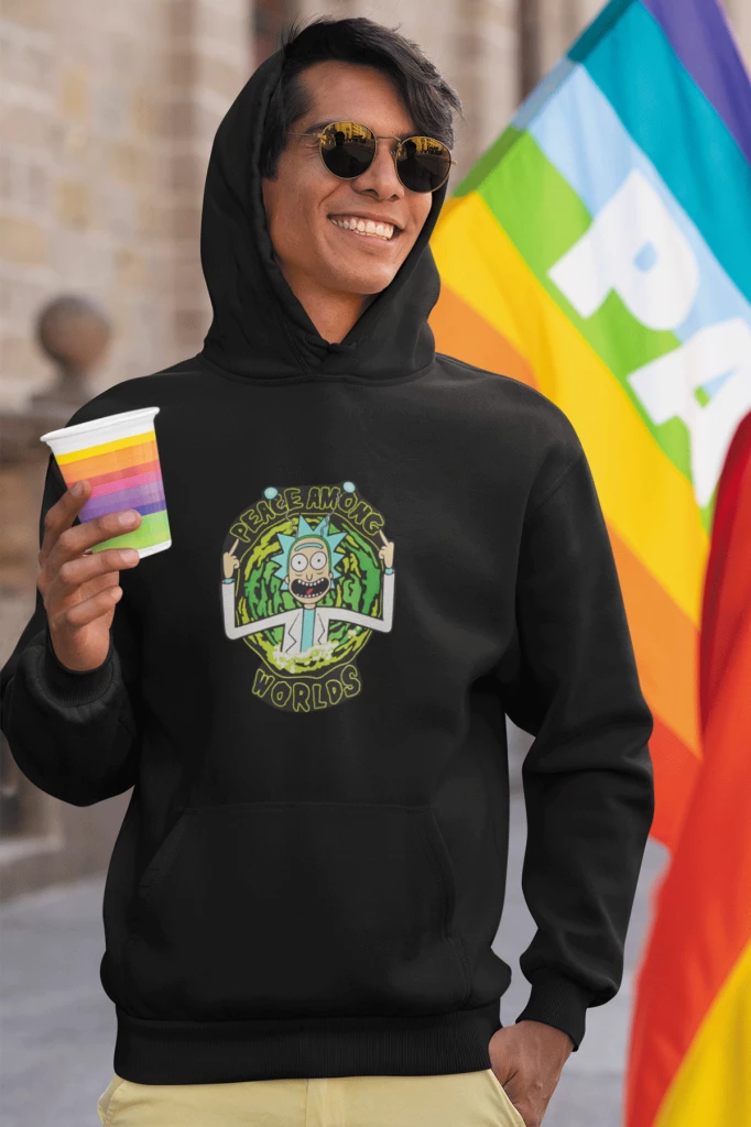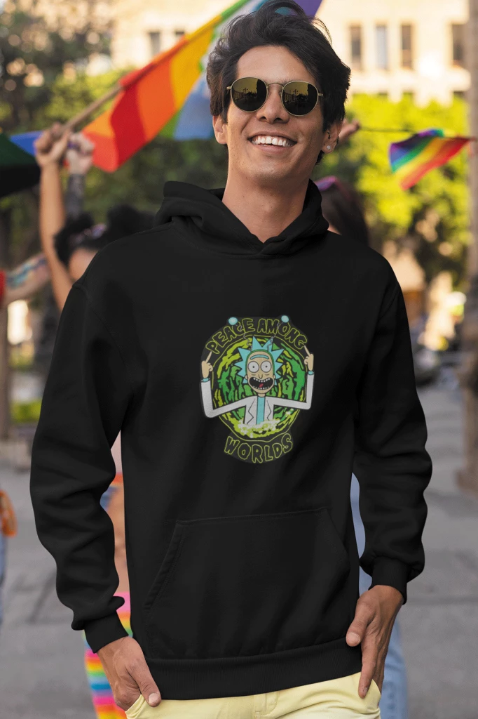 Needion - Rick And Morty Siyah Erkek Kapşonlu Sweatshirt - Hoodie XXXL