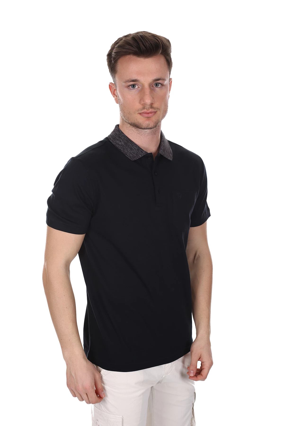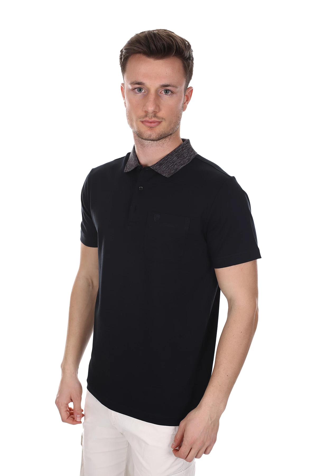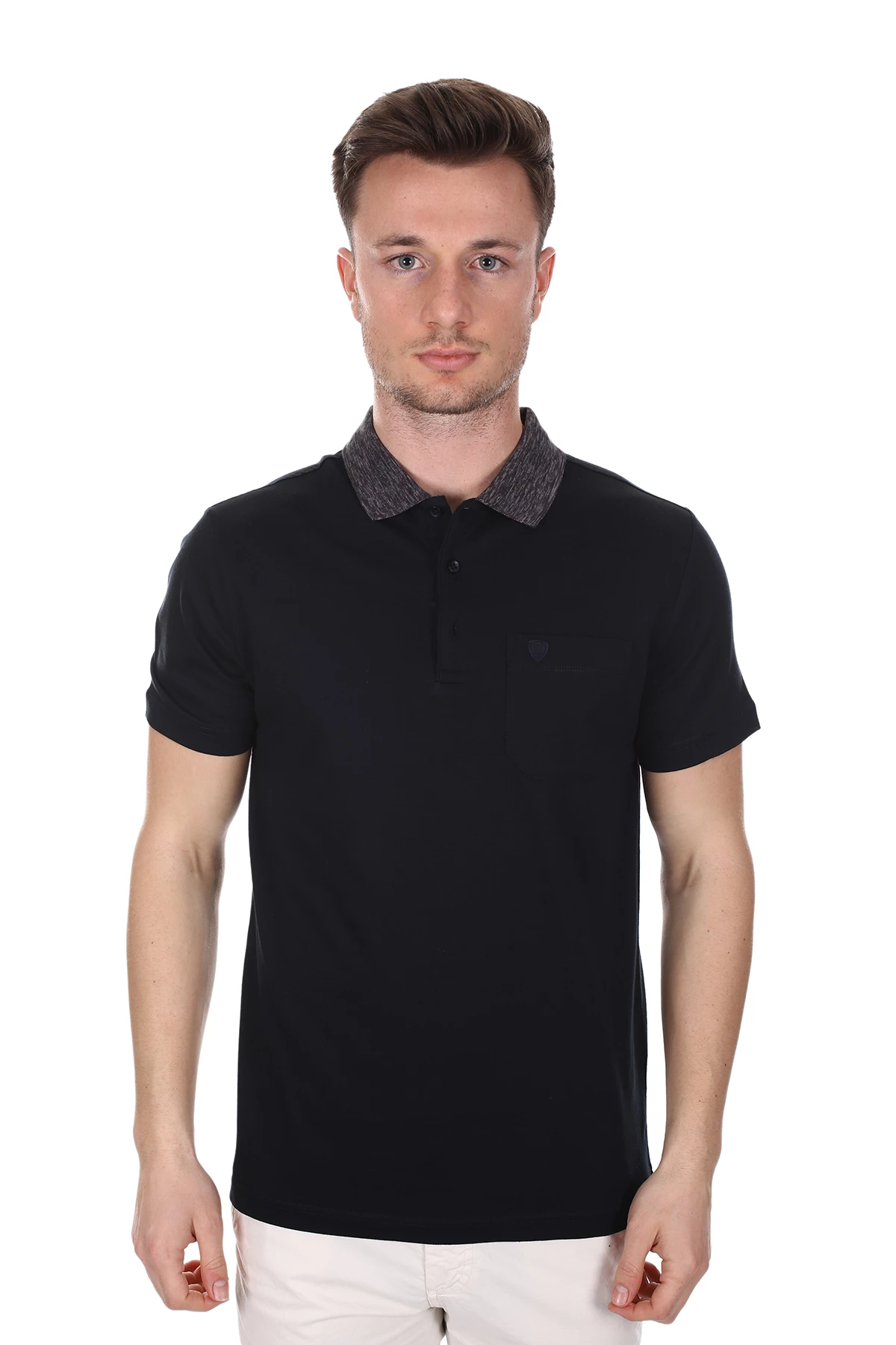 Polo yaka, Desensiz, Slim Fit. Cepli. İçerik: %100 Pamuk;