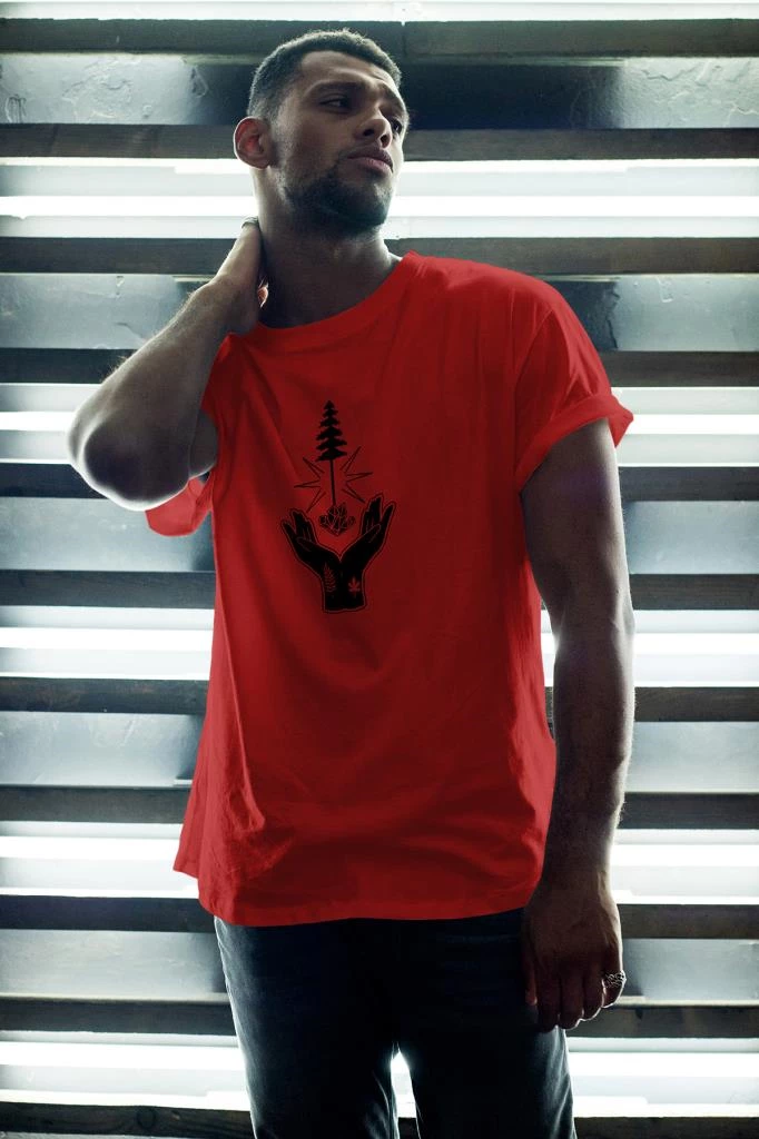 Needion - Hands Kırmızı Erkek Oversize Tshirt - Tişört XL