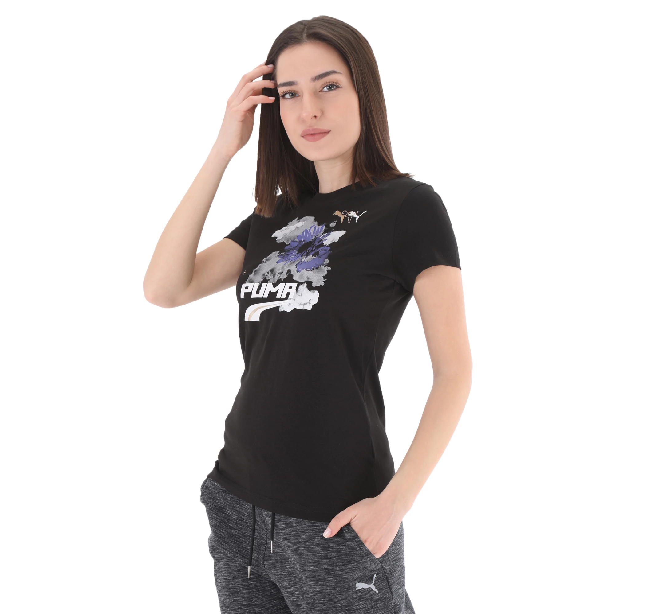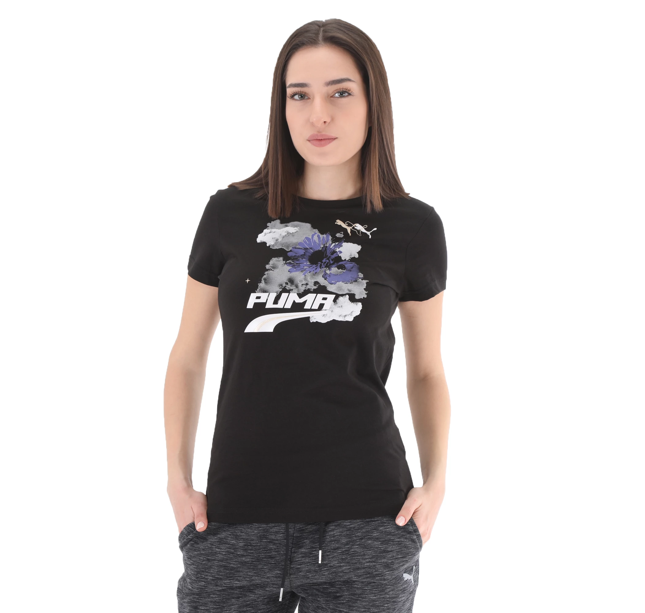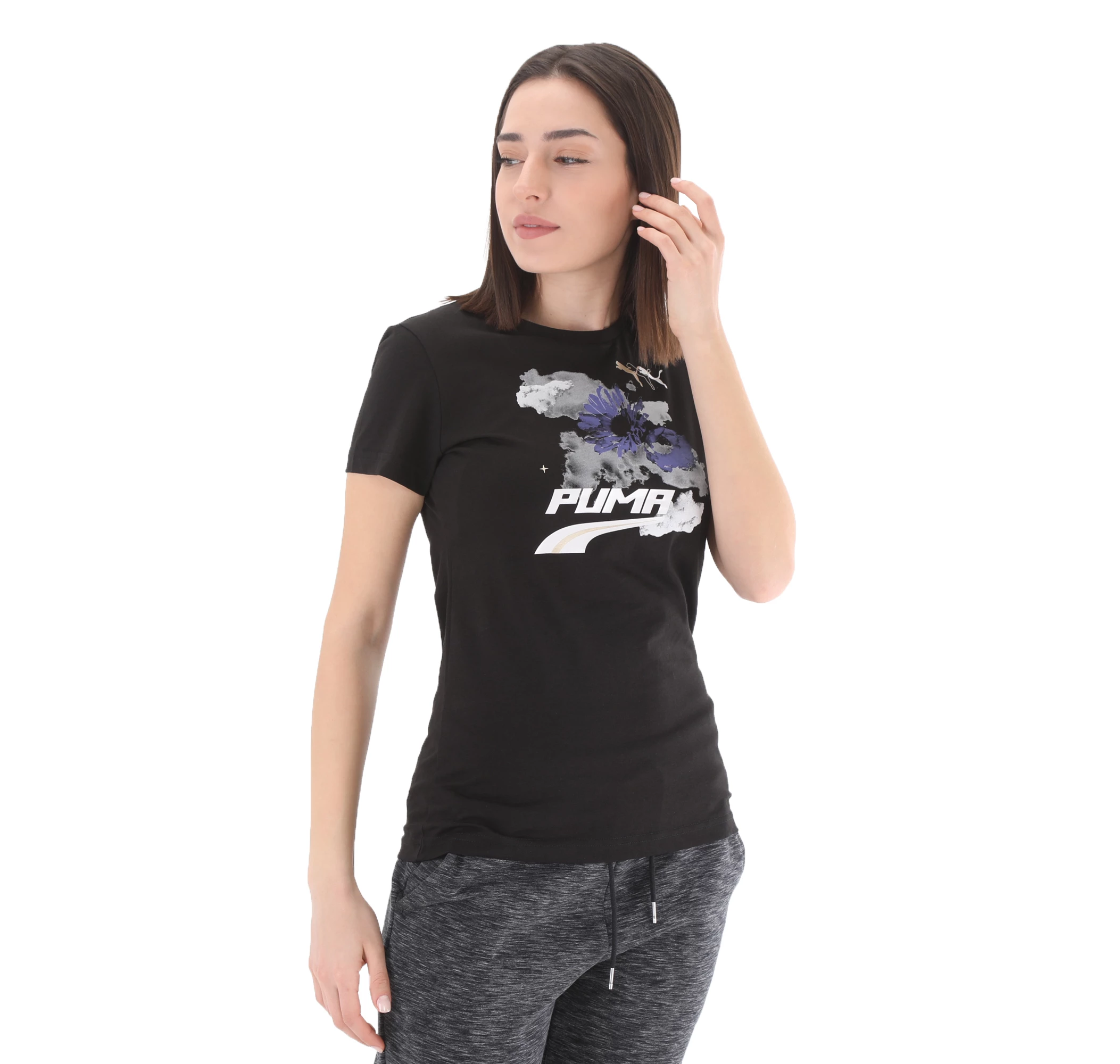 599747-01 Puma Evide Graphic Tee Puma White Kadın T-Shirt Siyah