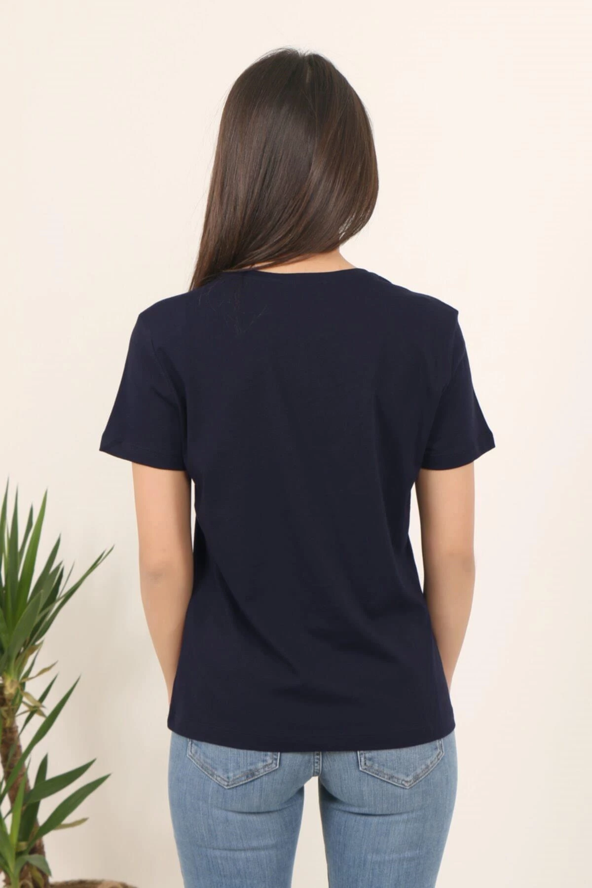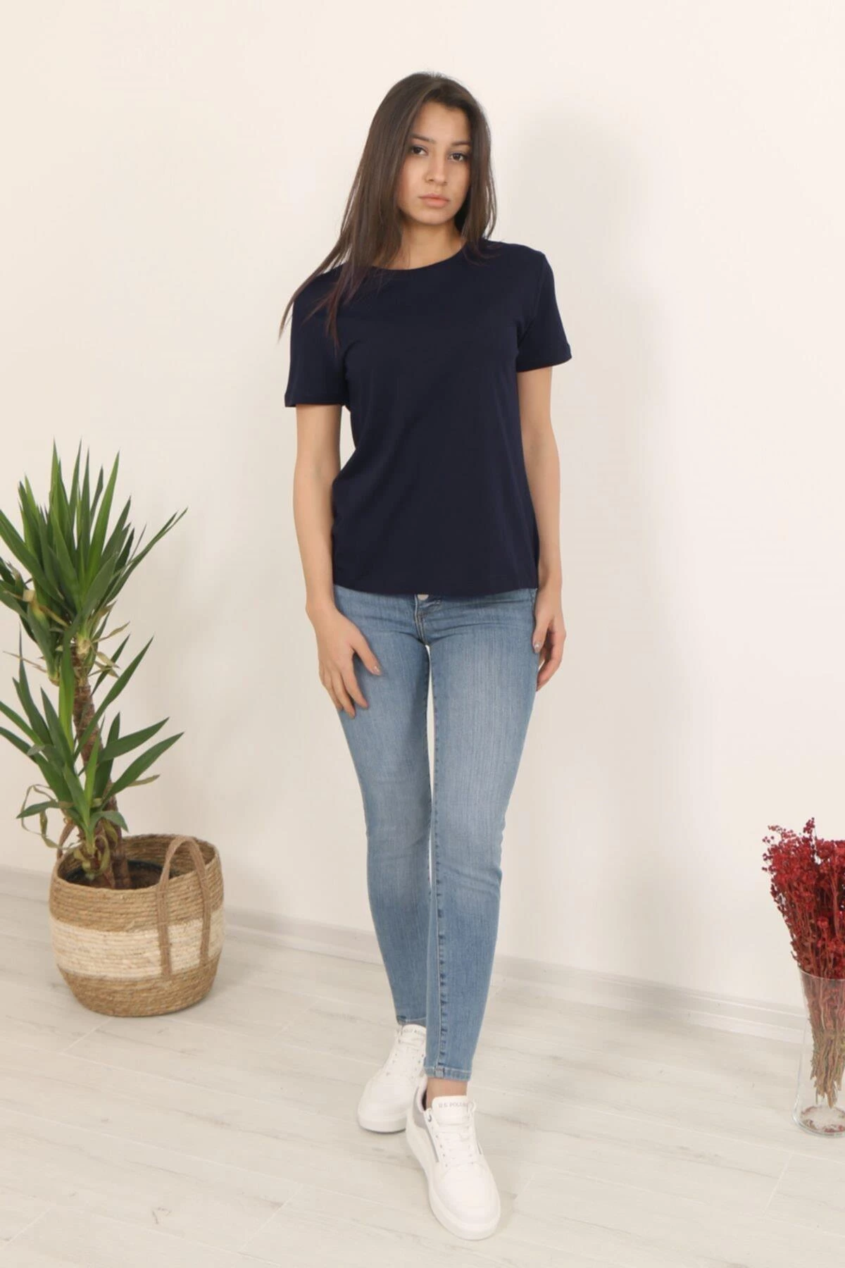 Fashion Friends Bisiklet Yaka Basic Kadın Tişört LACİVERT L