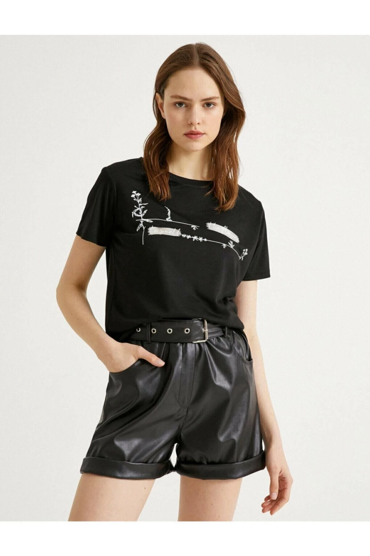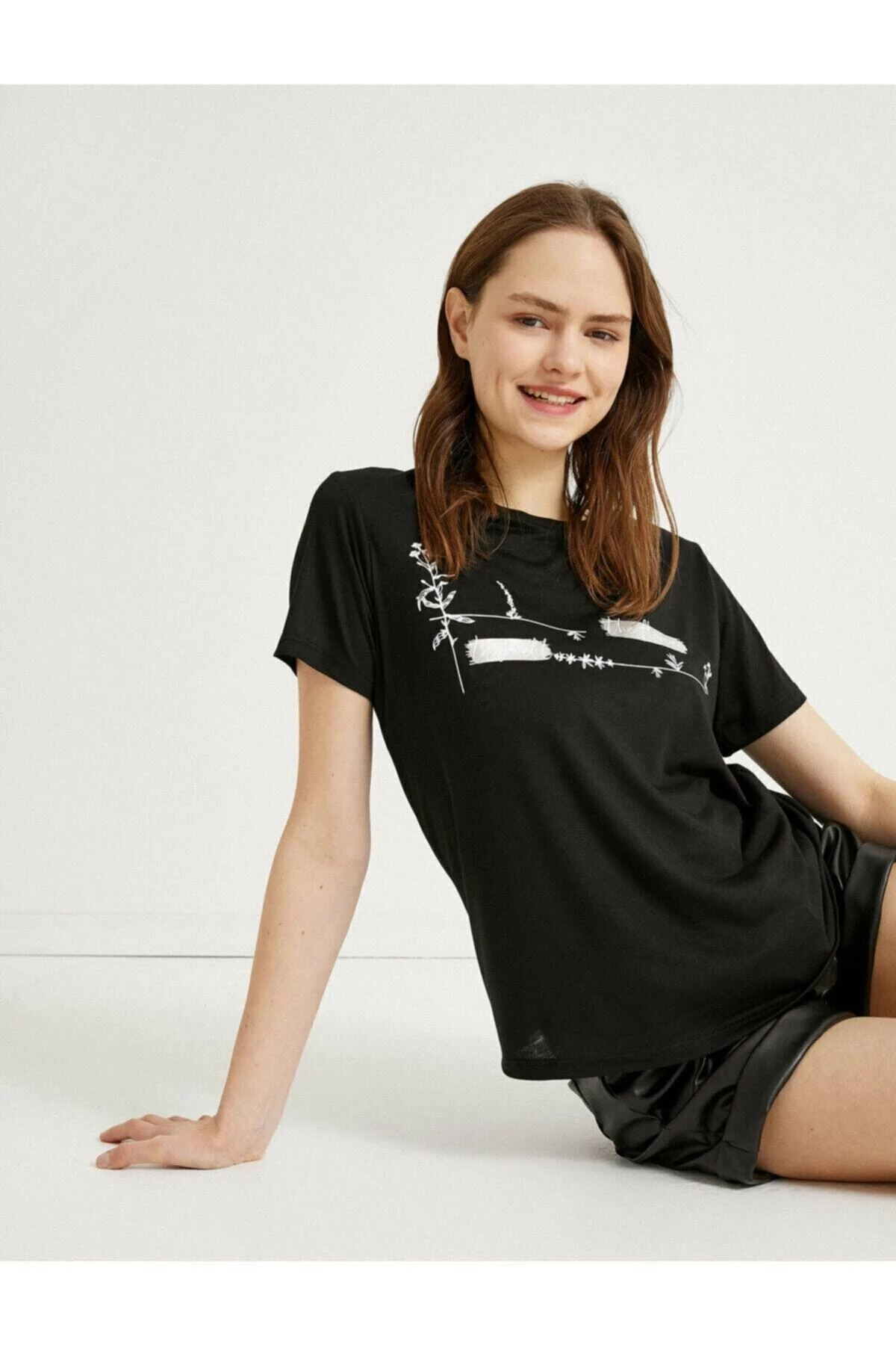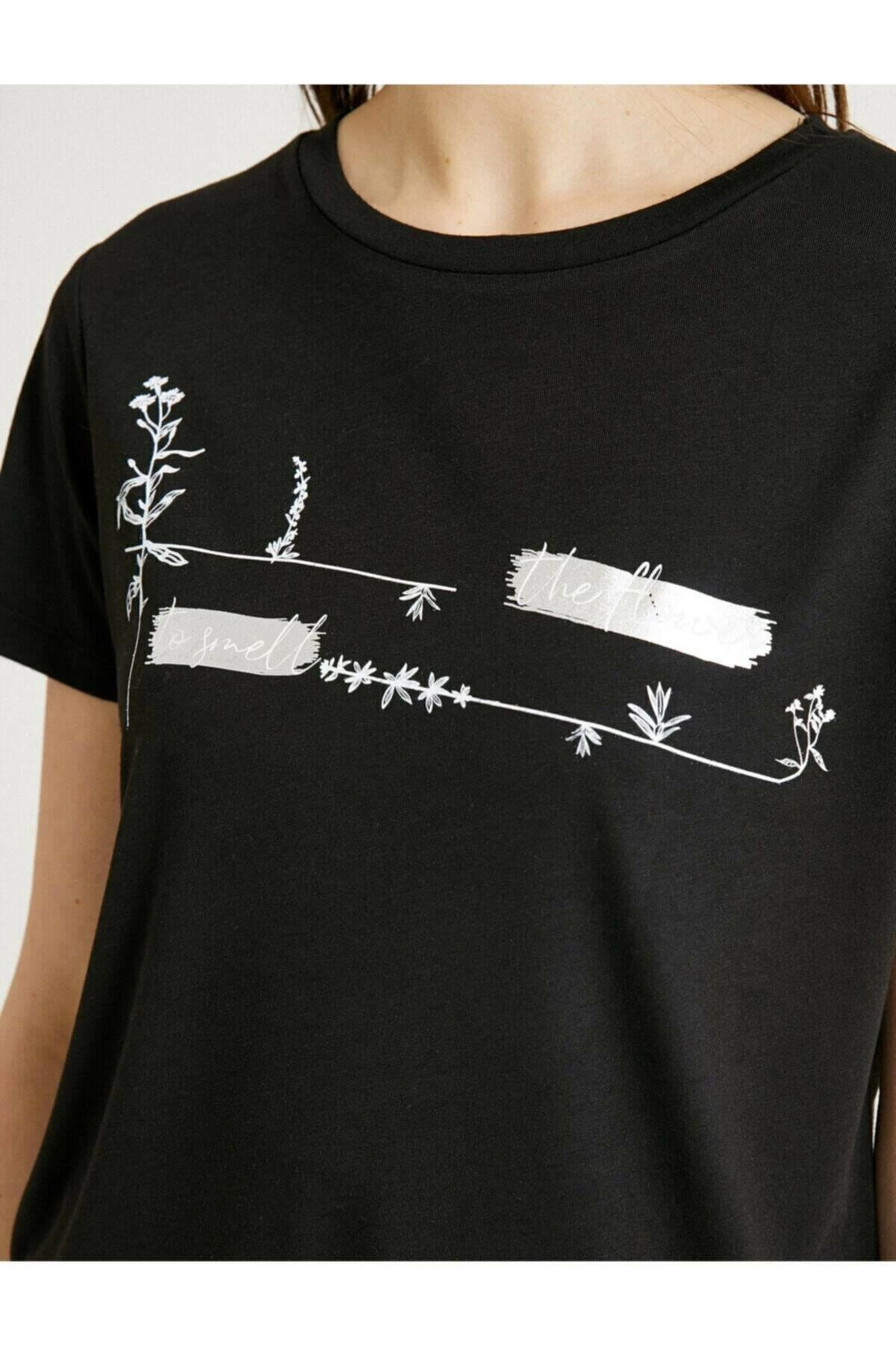 Koton Bisiklet Yaka Baskili T-Shirt SİYAH XXL