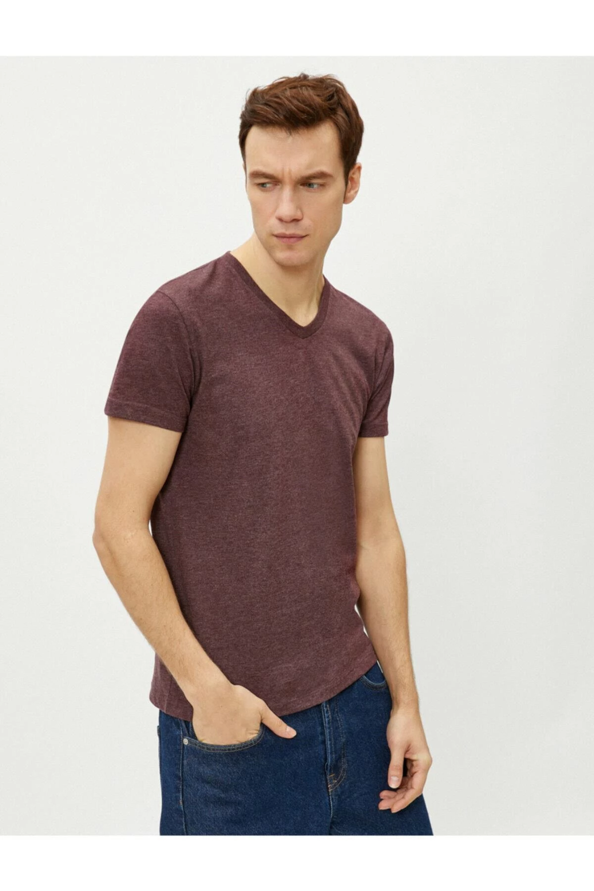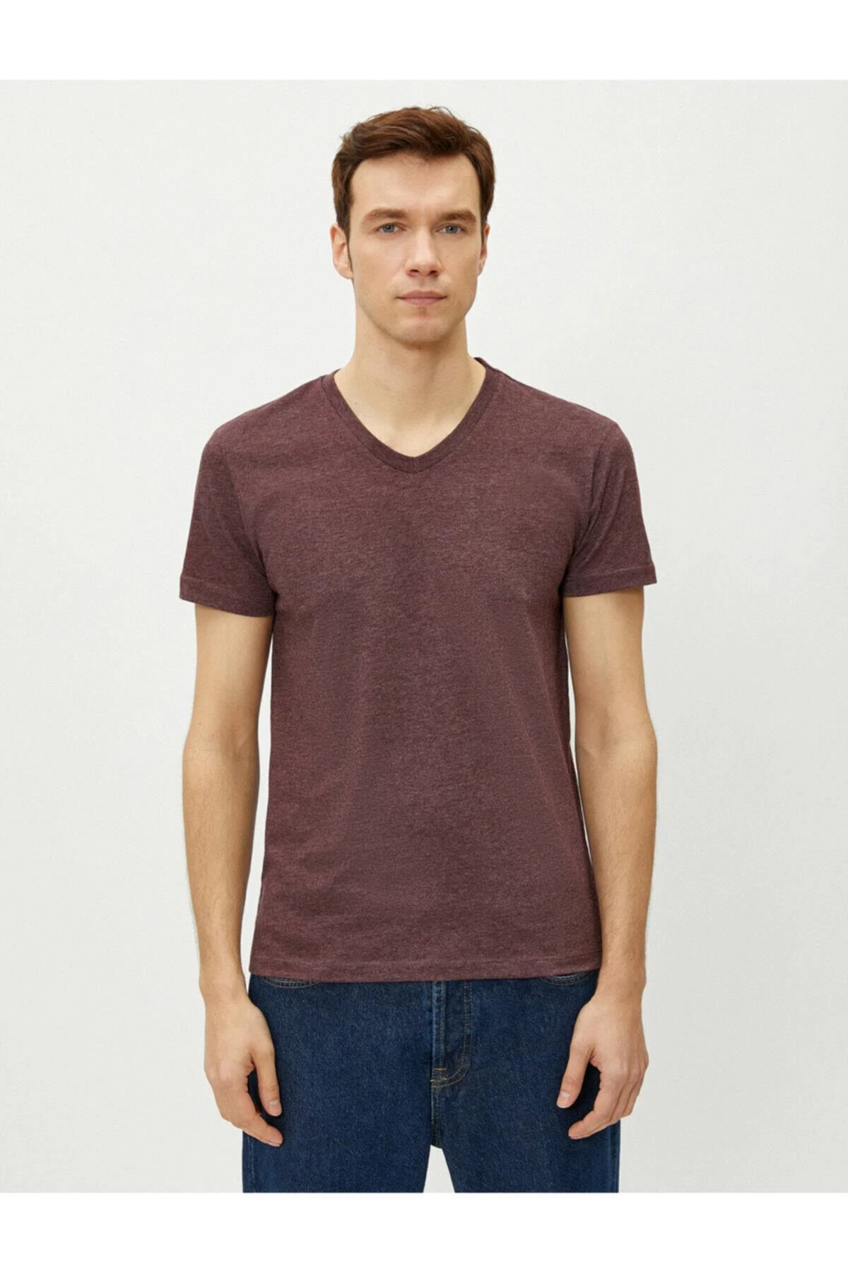 Koton Erkek Bordo V Yaka Pamuklu Kısa Kollu Basic Tisört BORDO XL