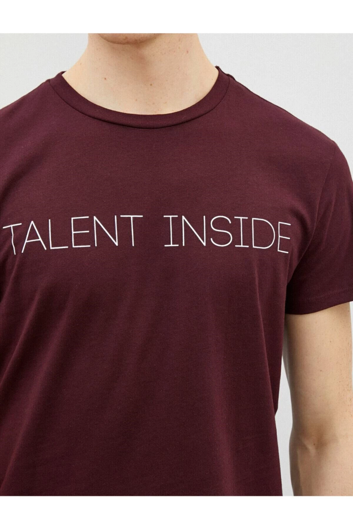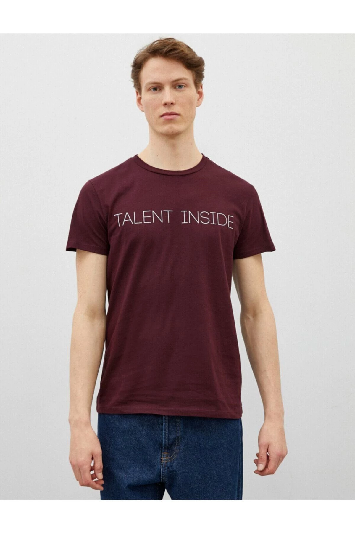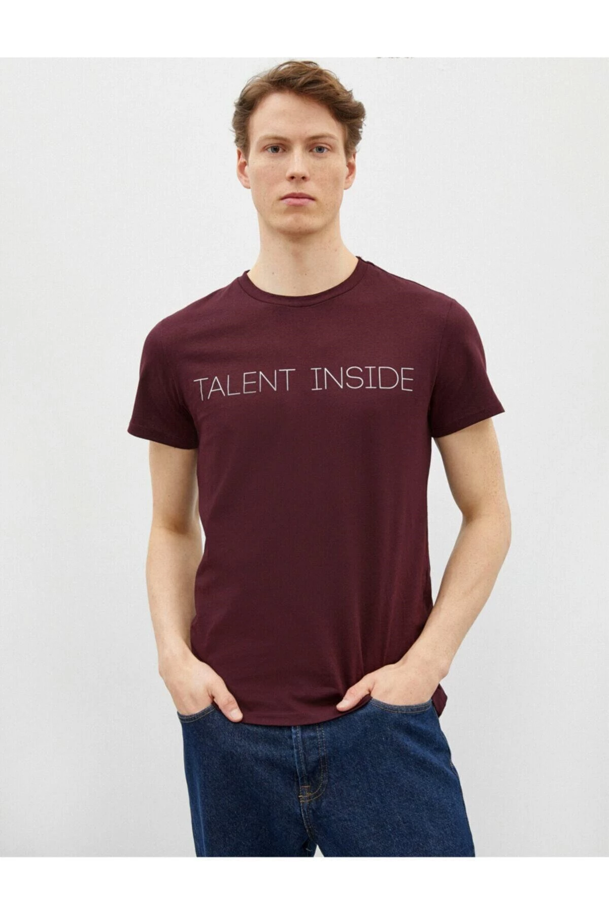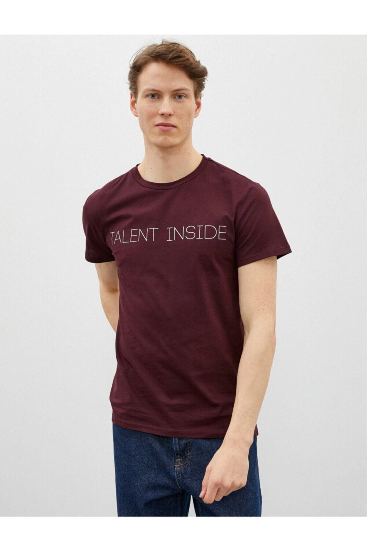 Koton Erkek Bordo Yazılı Bisiklet Yaka Kısa Kollu Pamuklu T-Shirt Mavi S