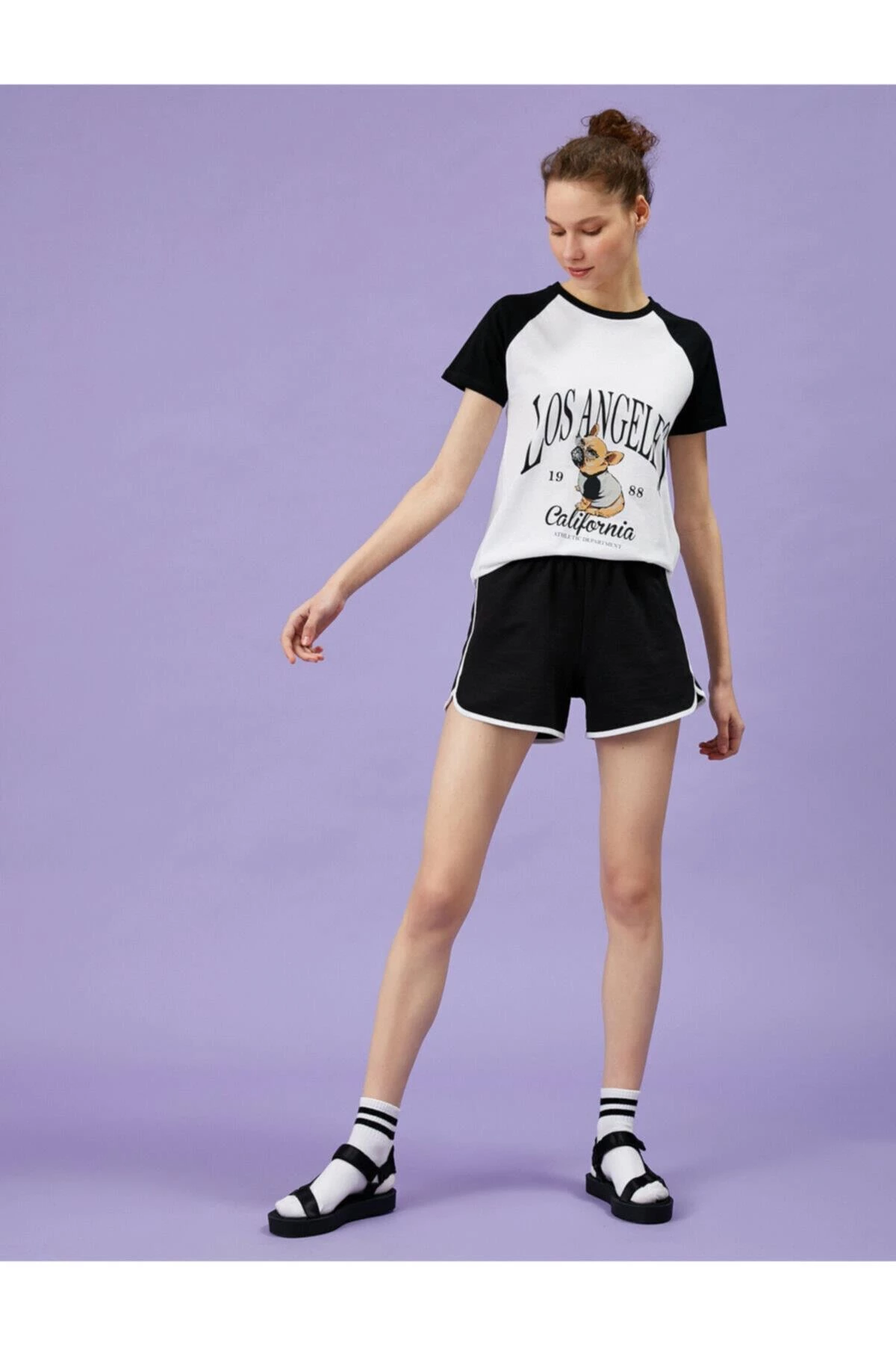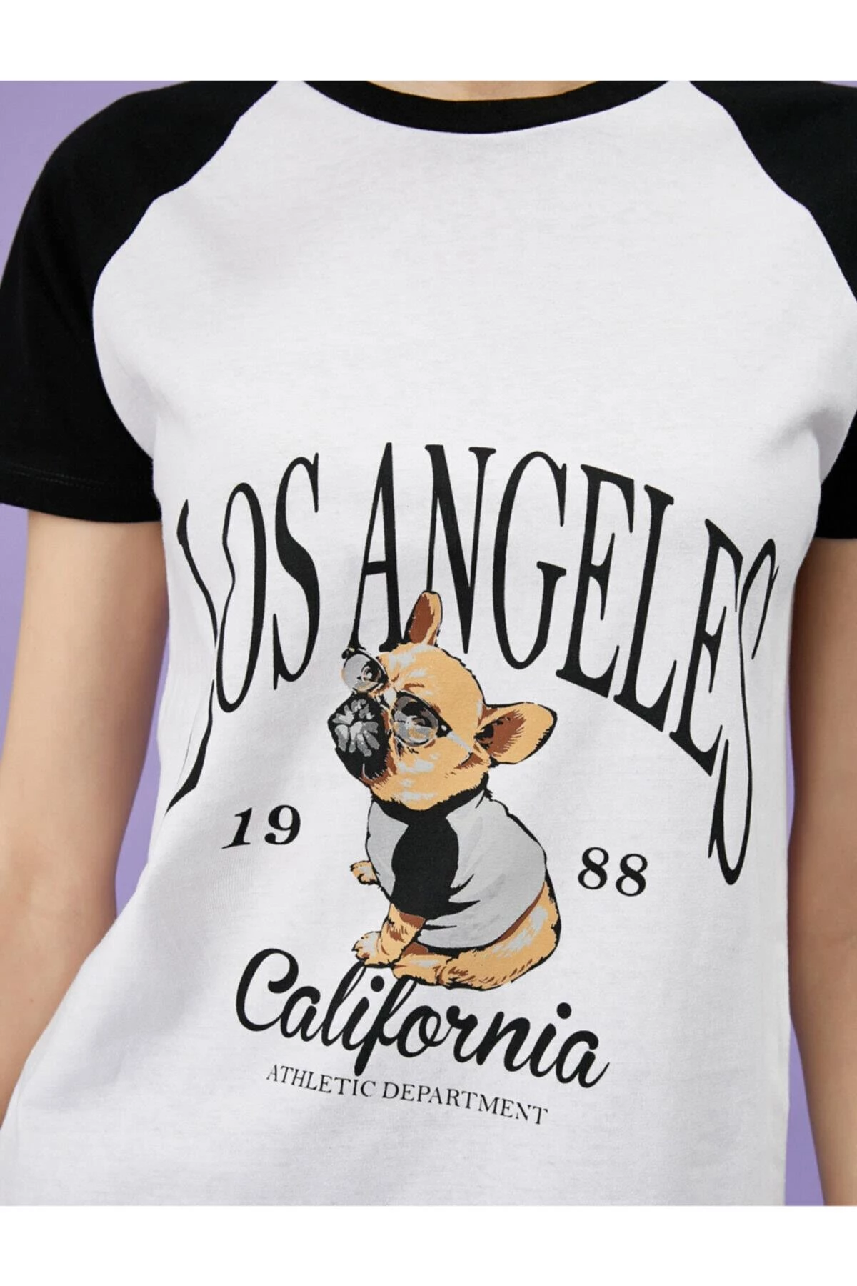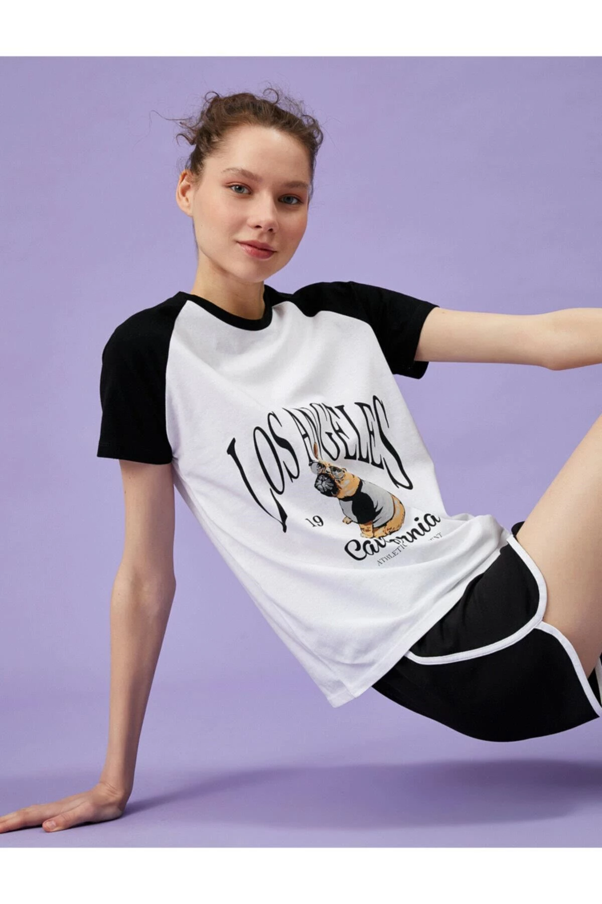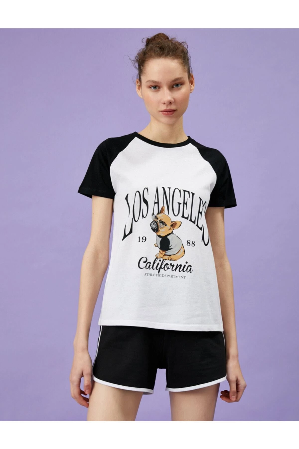 Koton Kadın Ekru Yazılı Baskılı T-Shirt ÇOK RENKLİ XL