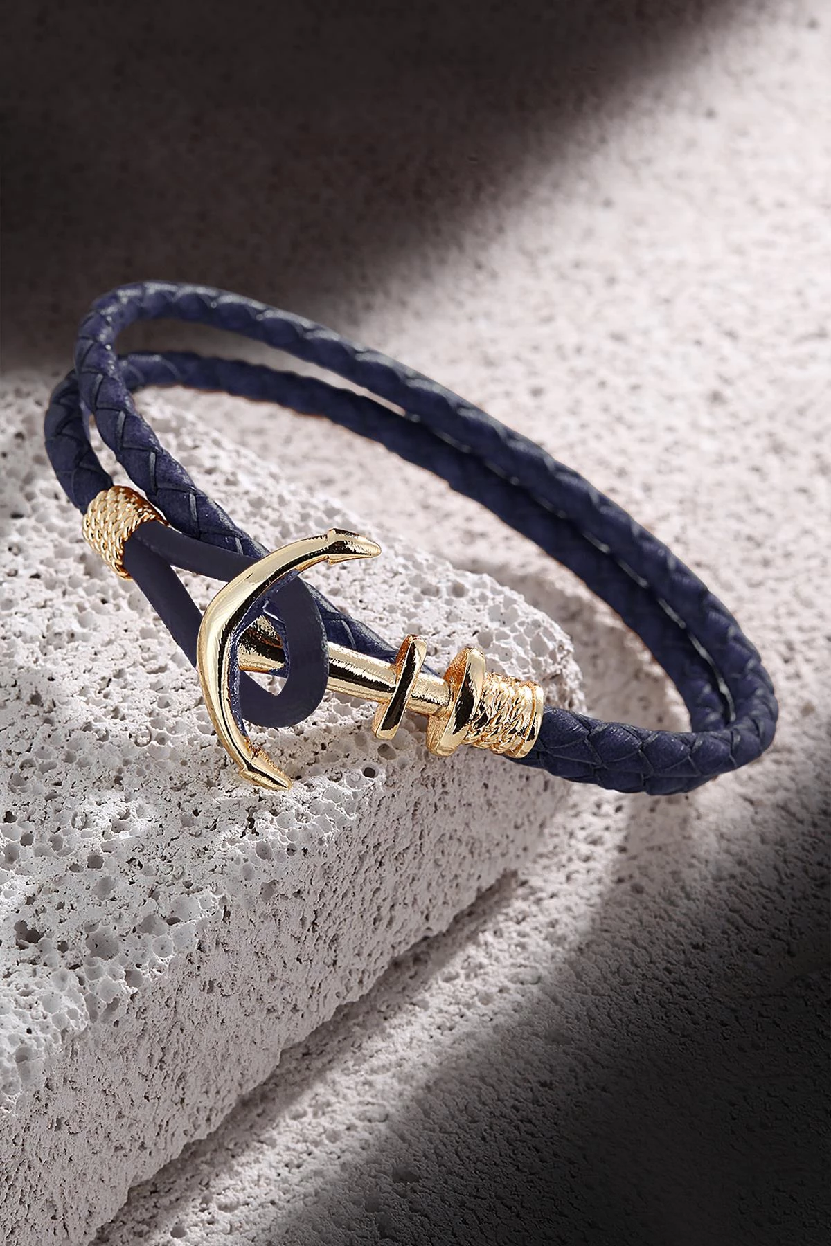 FRNCH Çapa Figürlü Gerçek Deri Handmade Erkek Bileklik; Materyal:Gerçek Deri,Pirinç;Bileklik Ebat:Standart Deri Renk:Lacivert;Figür Renk:Gold;FRNCH Kutusunda Gönderilmektedir;Kozmetik, parfüm ve temizlik ürünlerinden uzak tutulması önerilir
