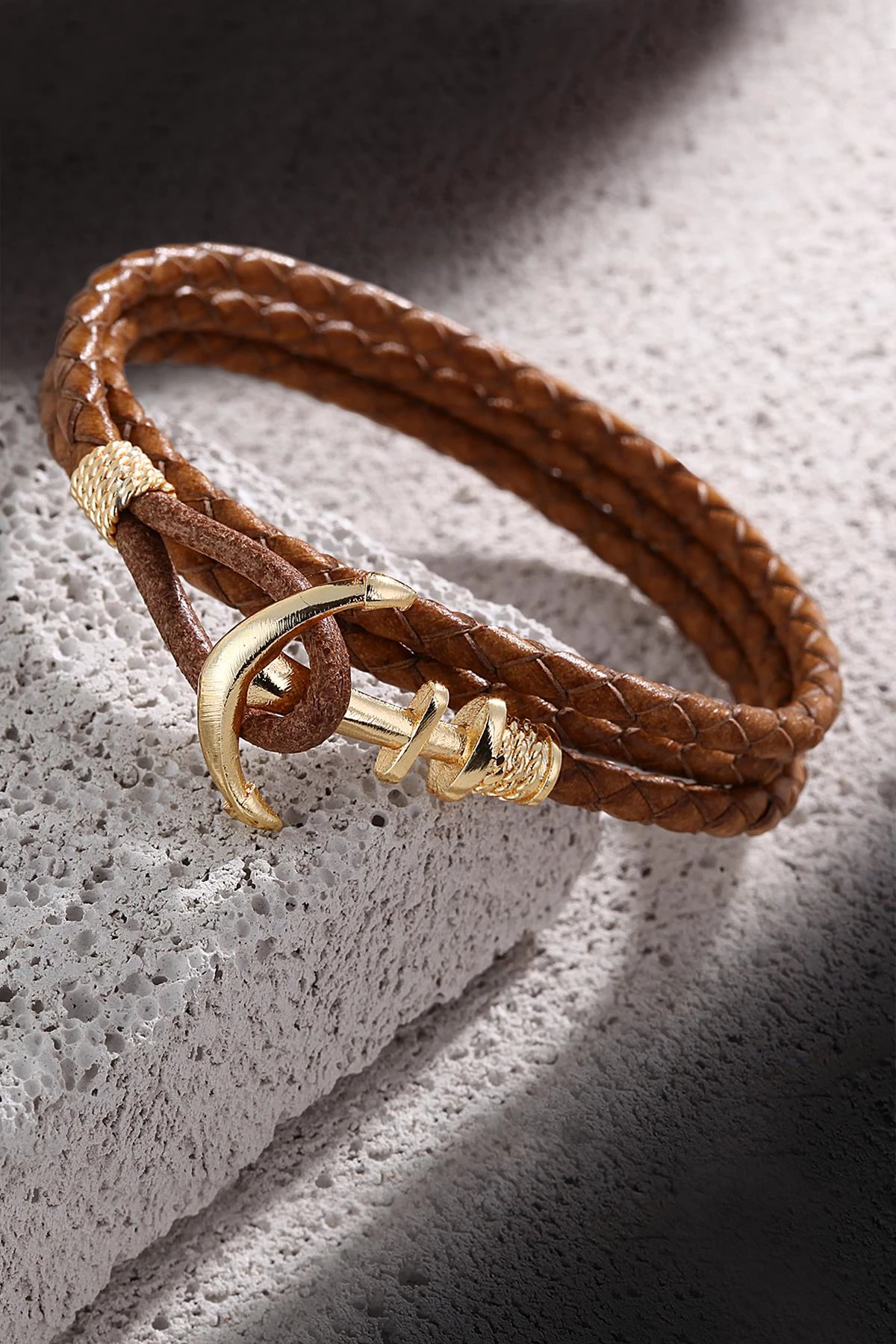FRNCH Çapa Figürlü Gerçek Deri Handmade Erkek Bileklik FRJ11162-1262-KG