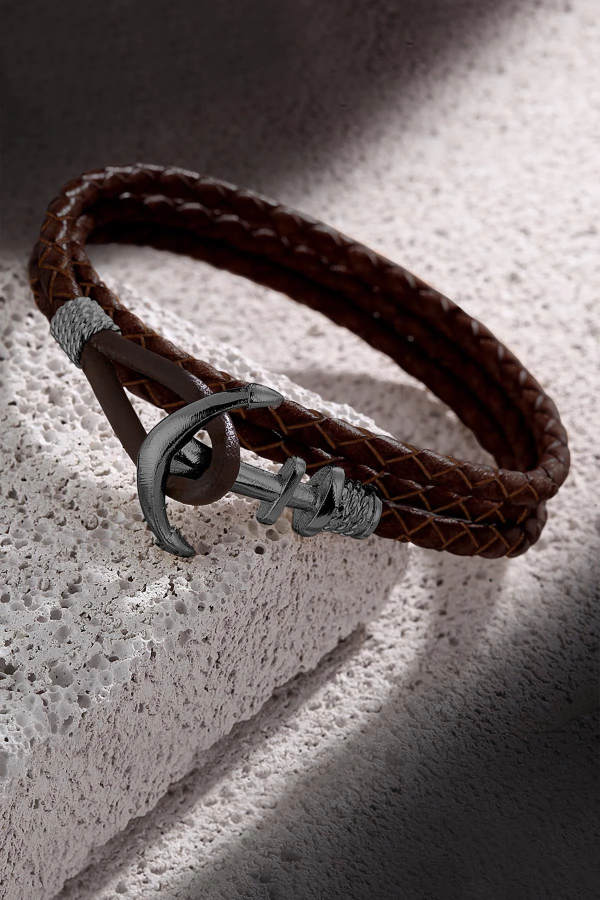 FRNCH Çapa Figürlü Gerçek Deri Handmade Erkek Bileklik FRJ11162-1262-RB