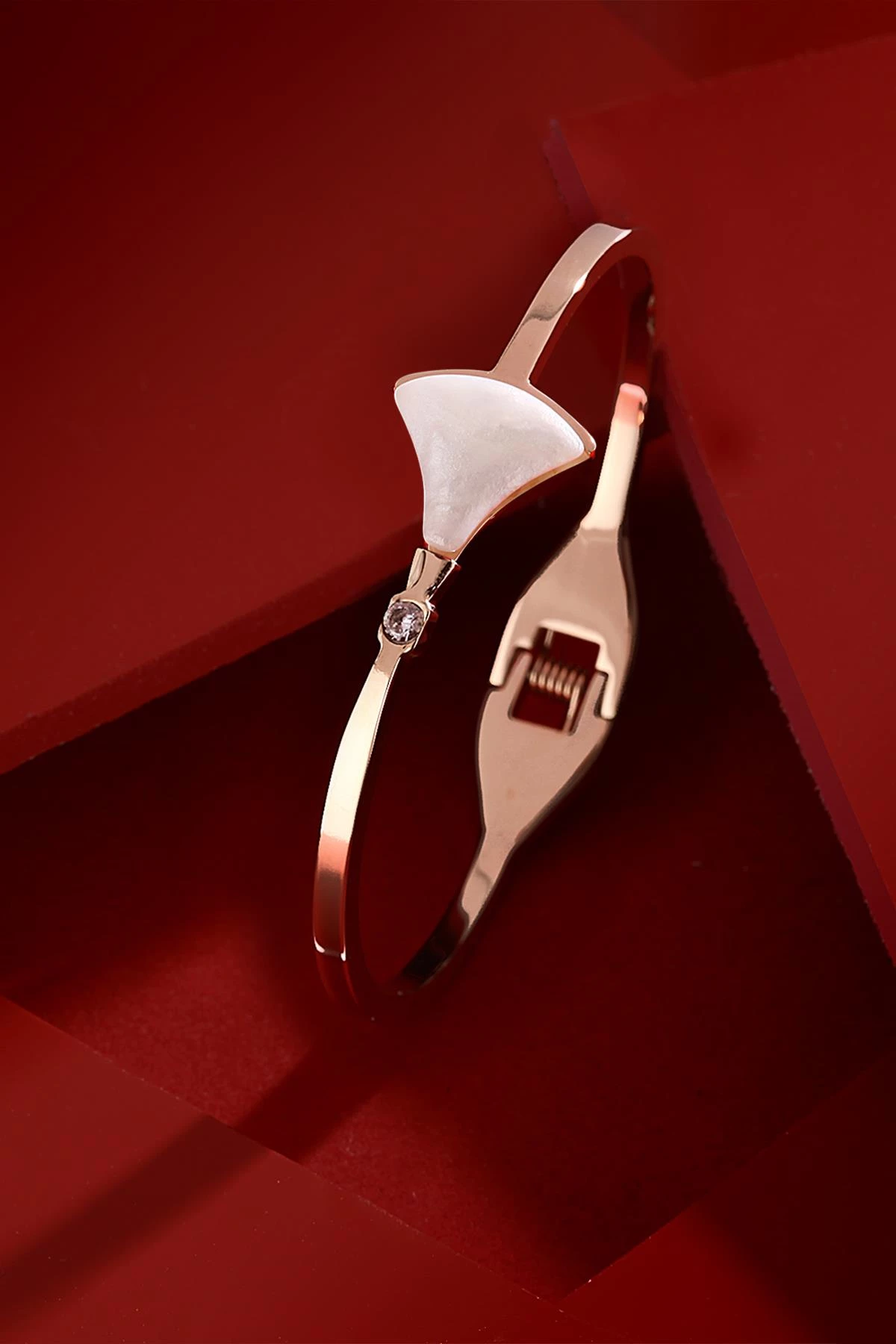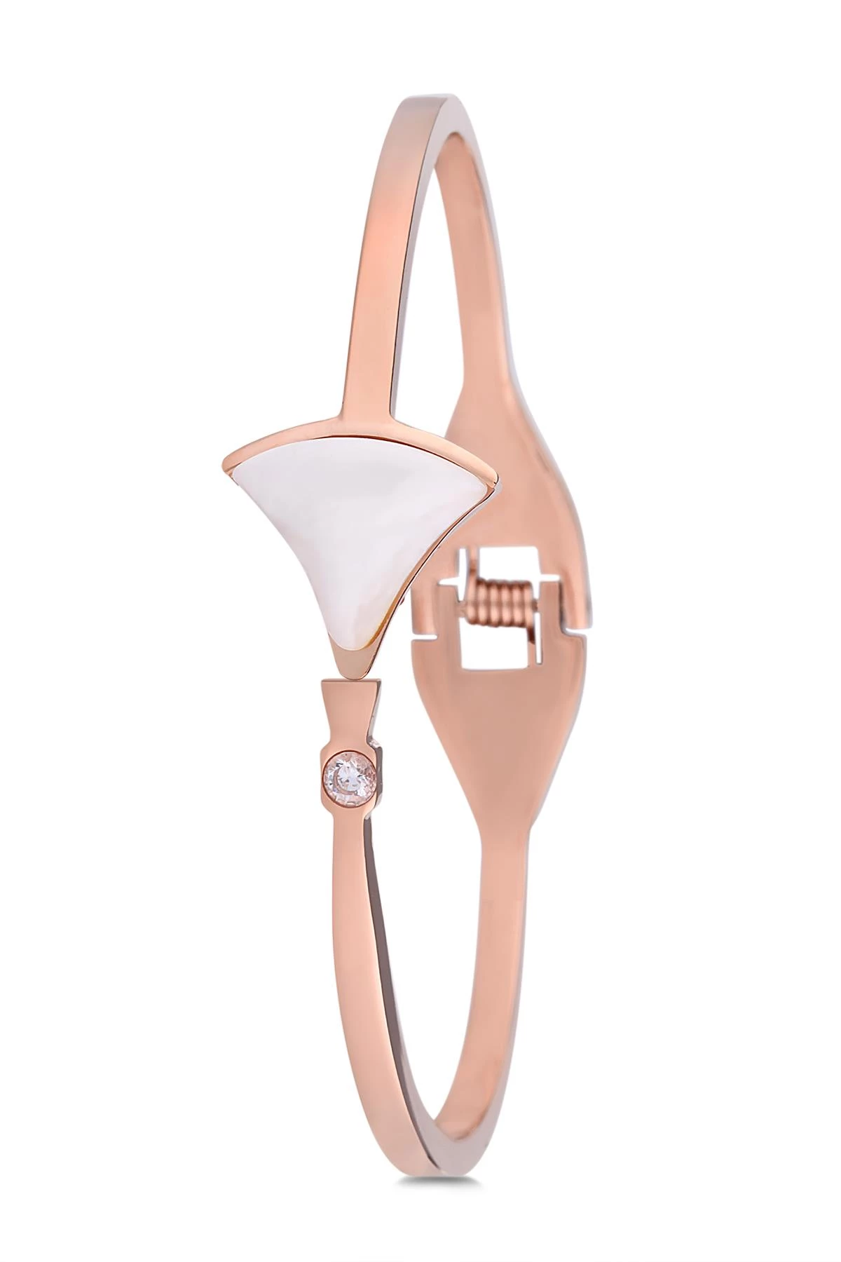 Needion - FRNCH Kadın Çelik Beyaz Desenli Rose Bileklik  FRJ10914-1014-C