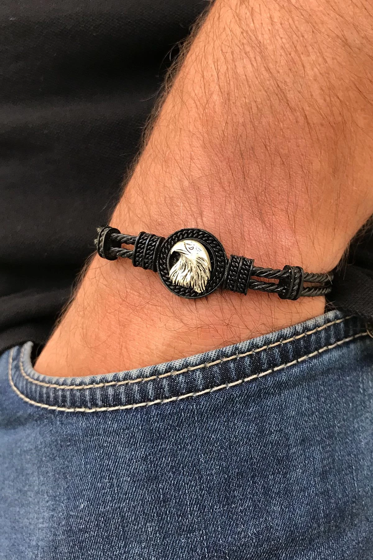 FRNCH Kartal Figürlü Siyah-Gümüş Renkli Erkek Bileklik FRJ11276-1376-B2A2
