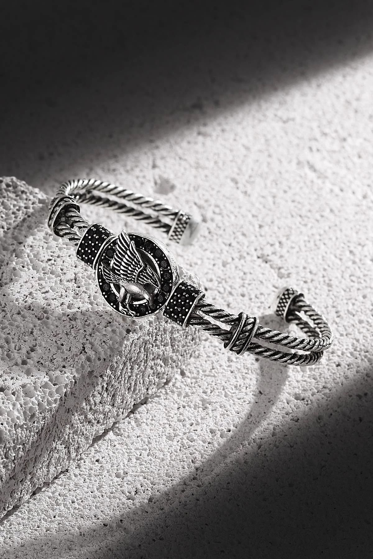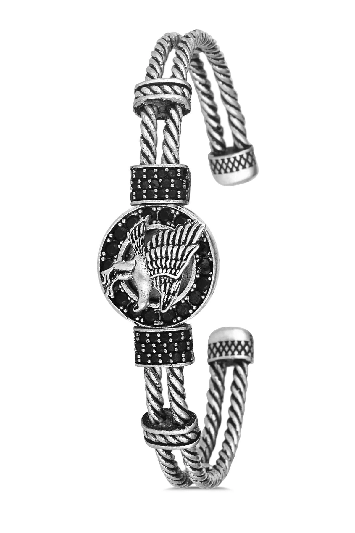 FRNCH Kartal Figürlü Zirkon Taşlı Antik Gümüş Renk Erkek Bileklik FRJ11233-1333-A2