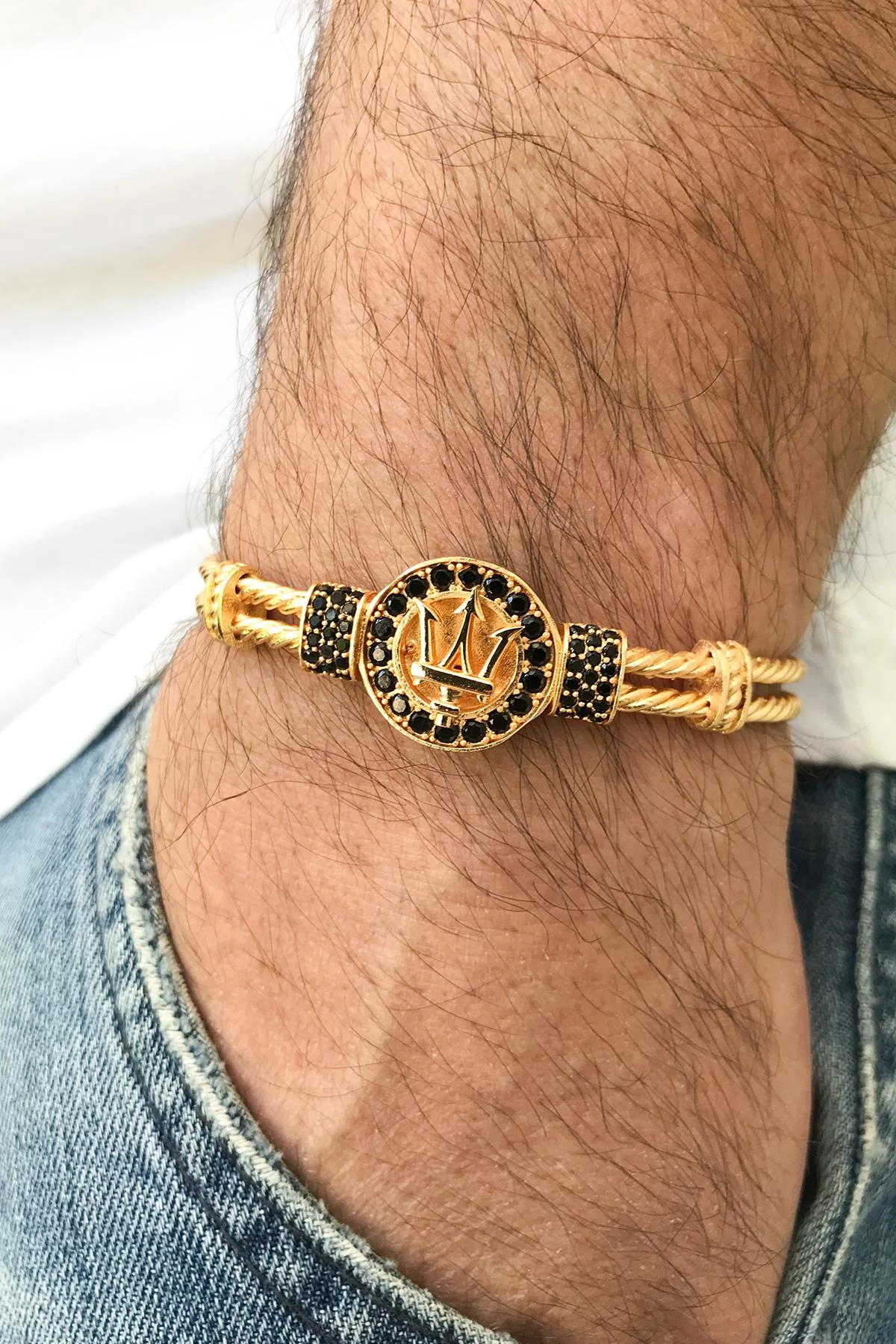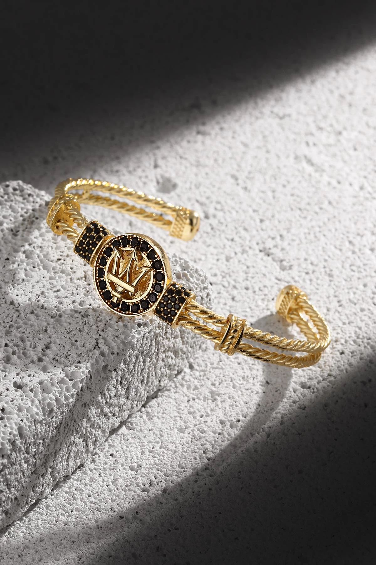 Needion - FRNCH Poseidon Figürlü Zirkon Taşlı Gold Renk Erkek Kelepçe Bileklik FRJ11207-1307-G