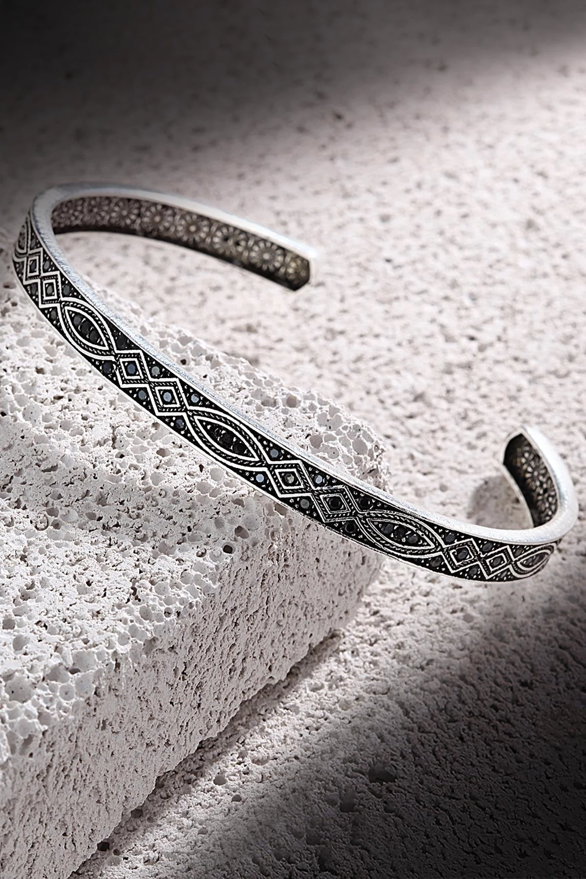 FRNCH Zirkon Taşlı Şal Desen Antik Gümüş Renk Erkek Kelepçe Bileklik FRJ11139-1239-A2