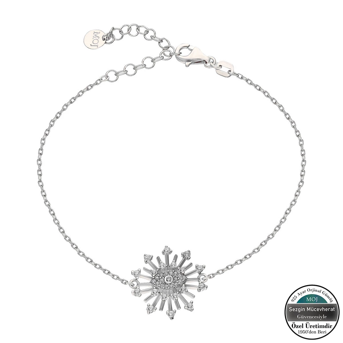 Güneş ve Göz Figürlü Özel Tasarım 925 Ayar Gümüş Bileklik