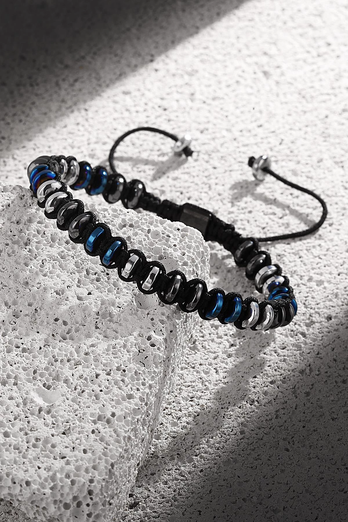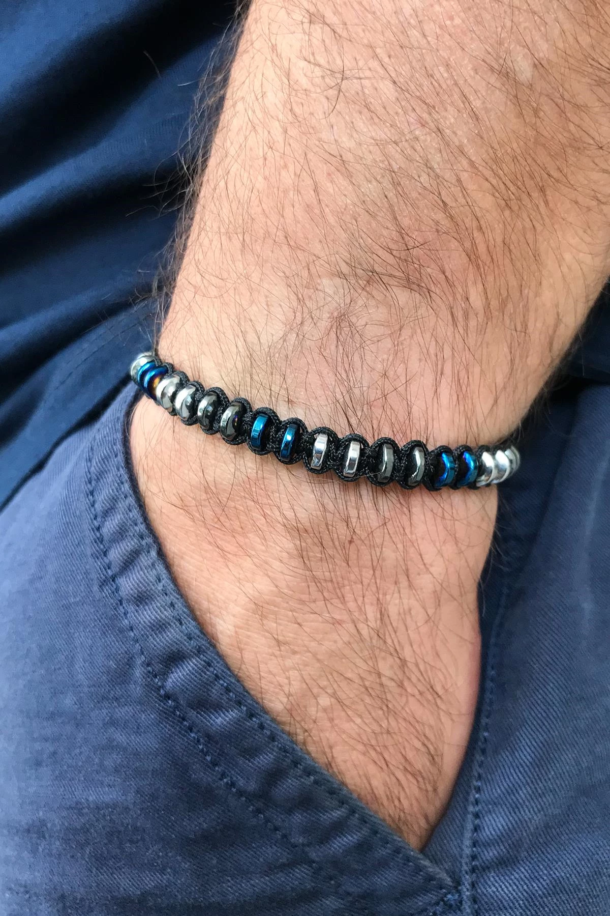 Needion - NOON Hematit Doğal Taşlı Çok Renkli Ayarlanabilir Erkek Bileklik NN1442
