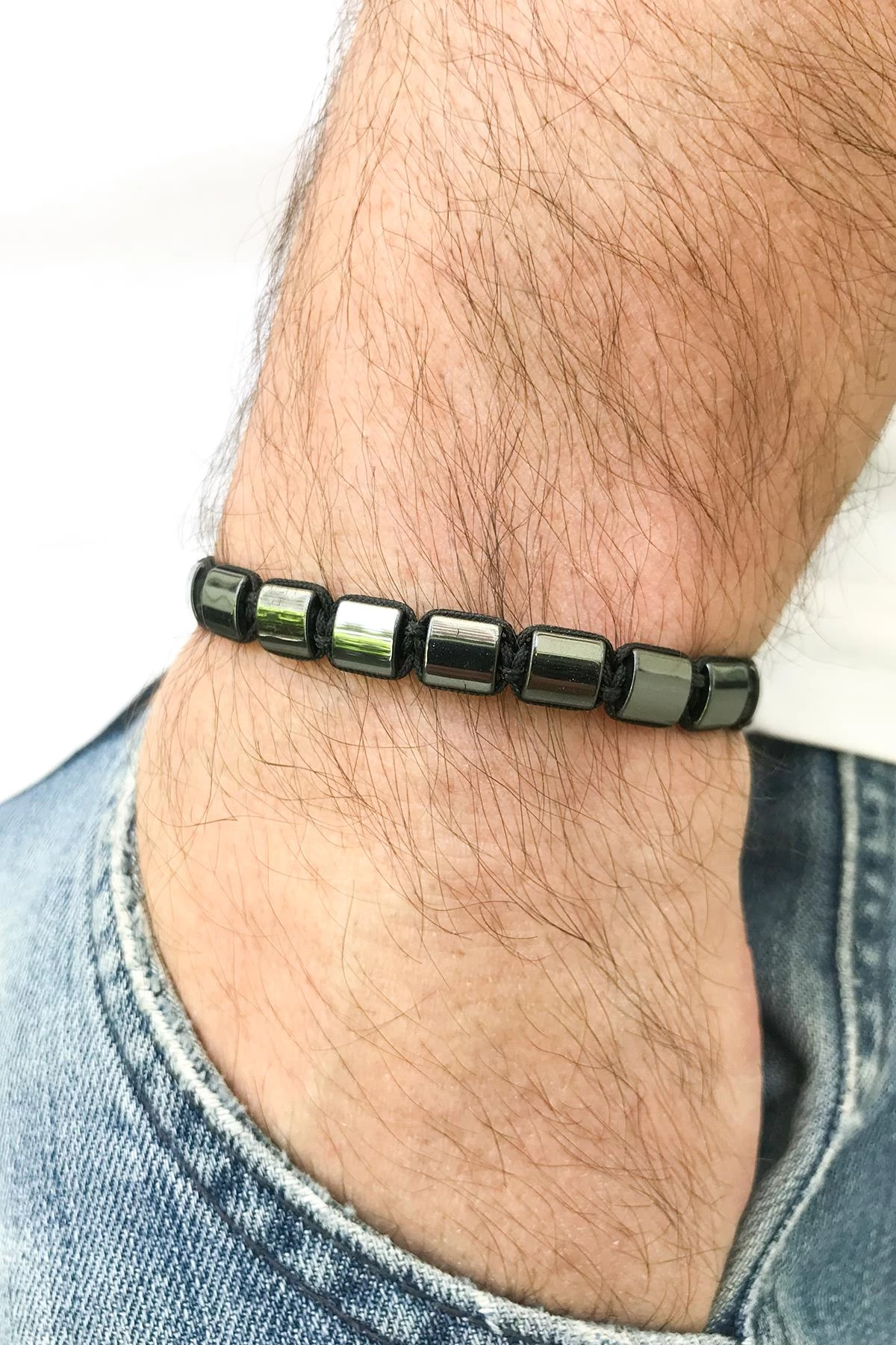 Noon Hematit Taşlı Handmade Ayarlanabilir Siyah Makrome Erkek Bileklik NN1377