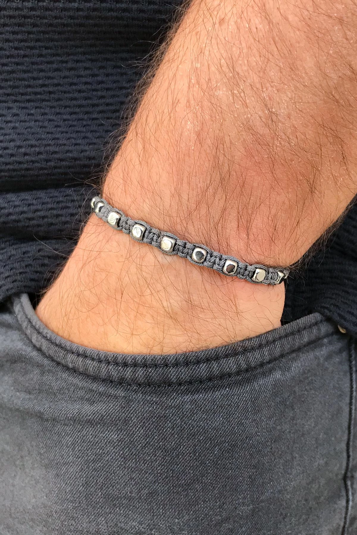NOON Kare Model Ayarlanabilir Makrome Erkek Bileklik;Materyal:Hematit Ebat:Ayarlanabilir İp Renk:Gri Figür Renk:Gümüş;NOON Kutusunda Gönderilmektedir;Kozmetik, parfüm ve temizlik ürünlerinden uzak tutulması önerilir