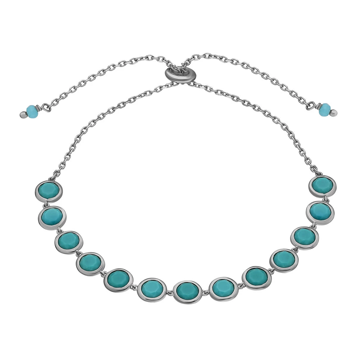 Turkuaz Taşlı Ayarlanabilir Koleksiyon Bileklik Rodyum Kaplama 925 Ayar