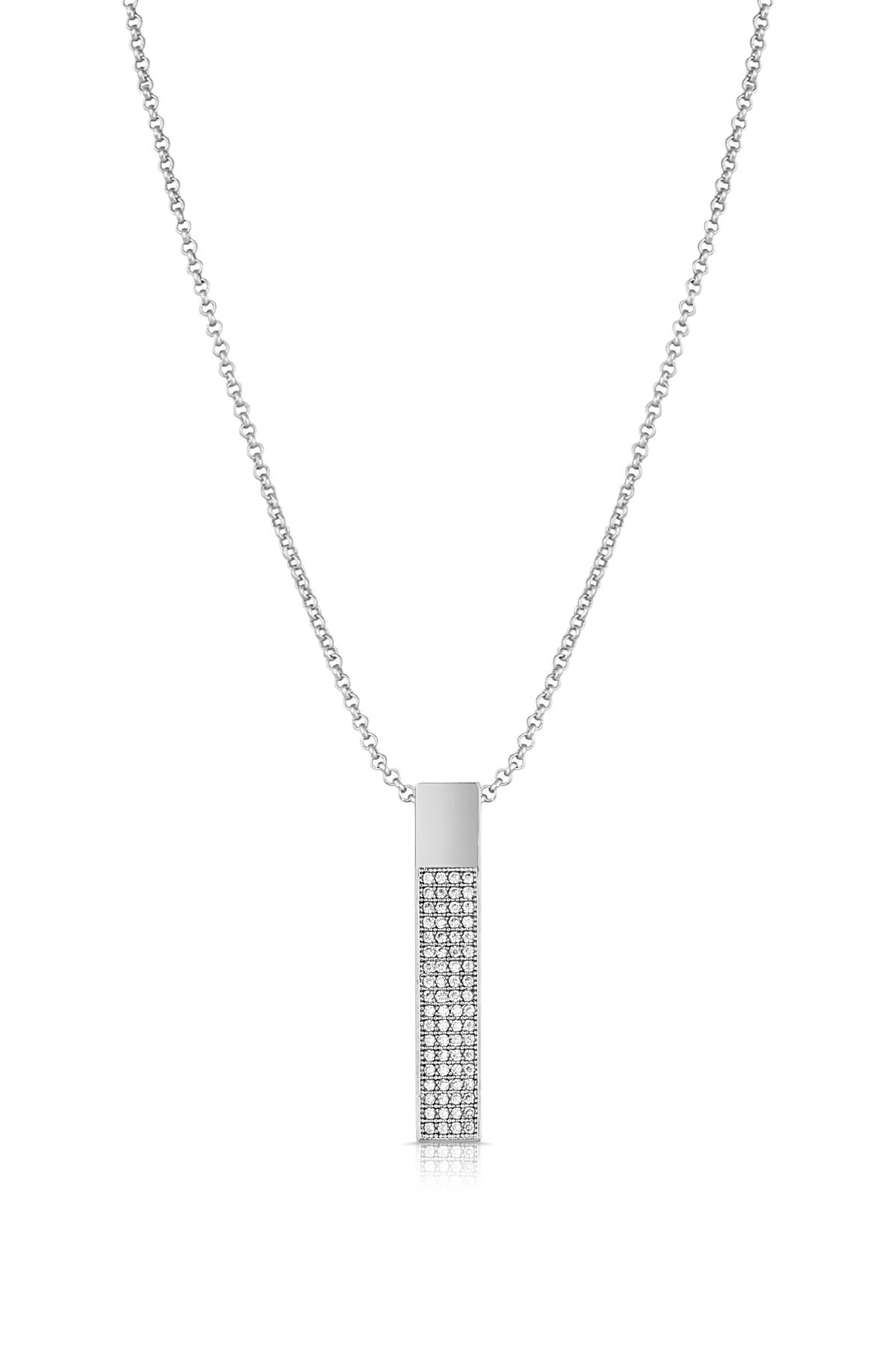 Needion - FRNCH Dikdörtgen Model Zirkon Taşlı Gümüş Renk Kadın Kolye FRJ30437-537-A