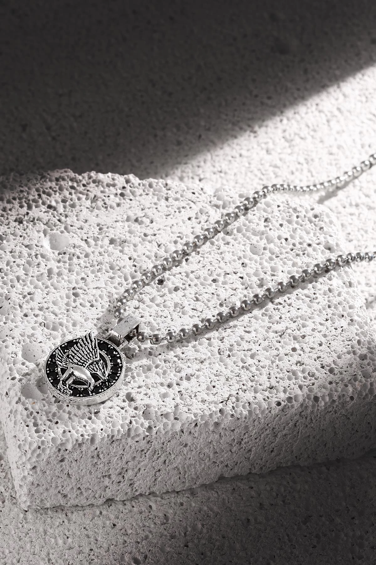 FRNCH Kartal Figürlü Zirkon Taşlı Antik Gümüş Renk Erkek-Kolye FRJ30429-529-A2