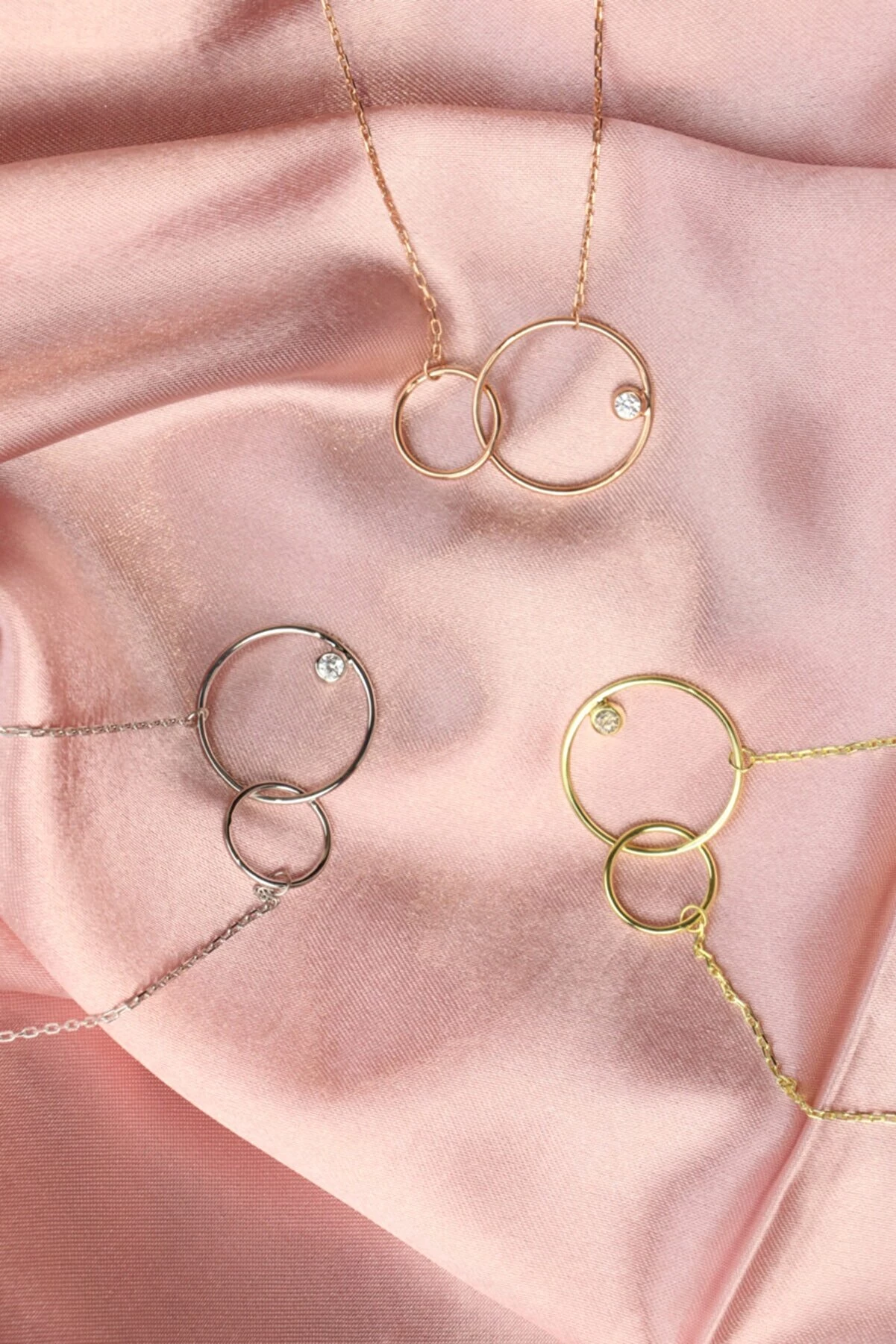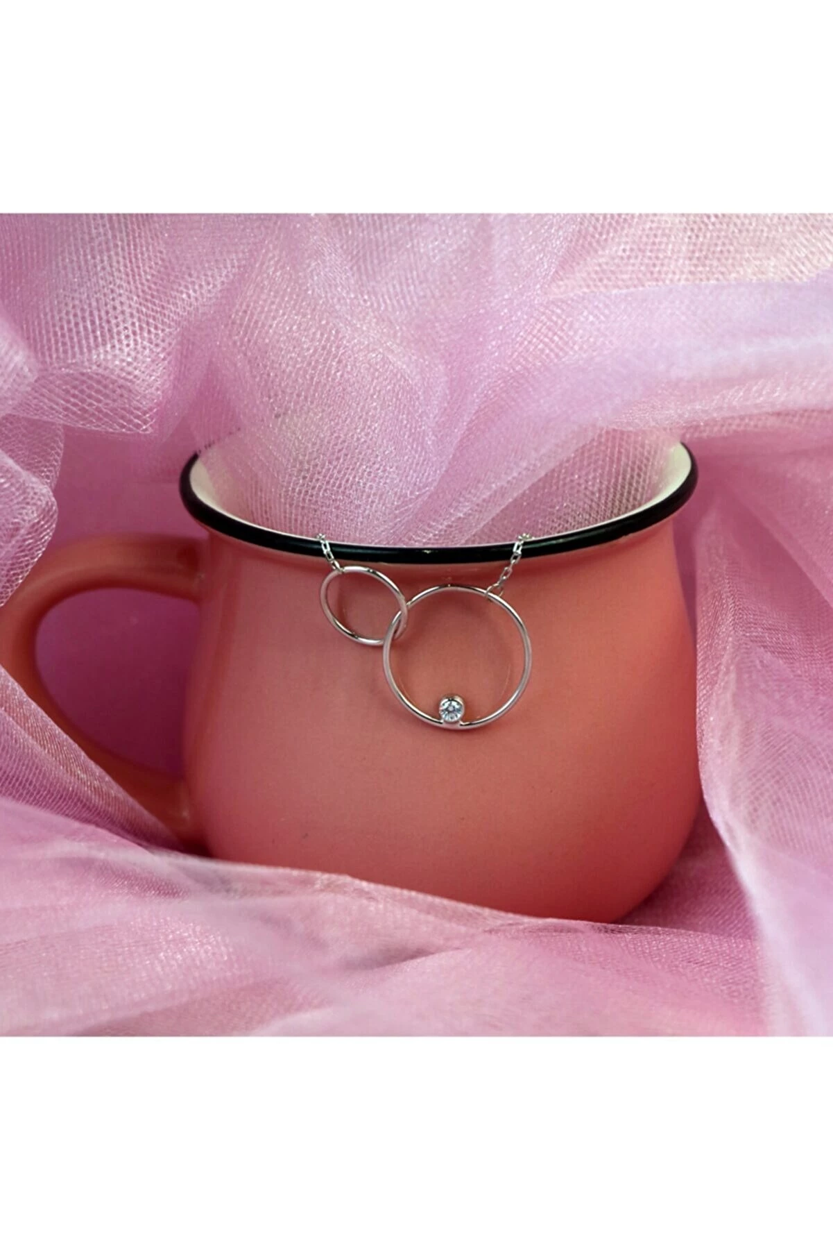 İç İçe Halka Tasarımlı Rodyum Kaplama Kolye