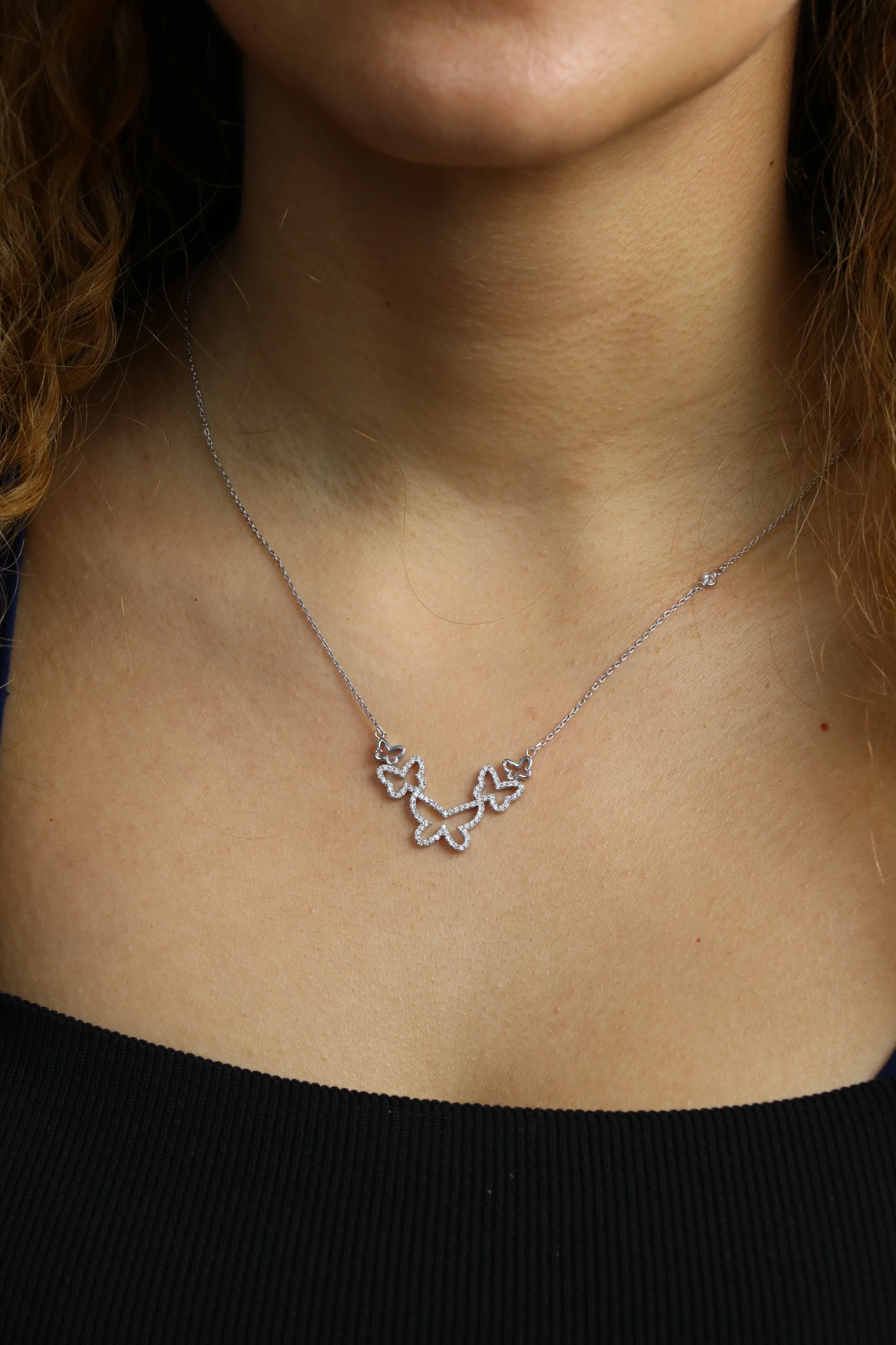 Kelebek Kolye Rodyum Kaplama 925 Ayar Gümüş