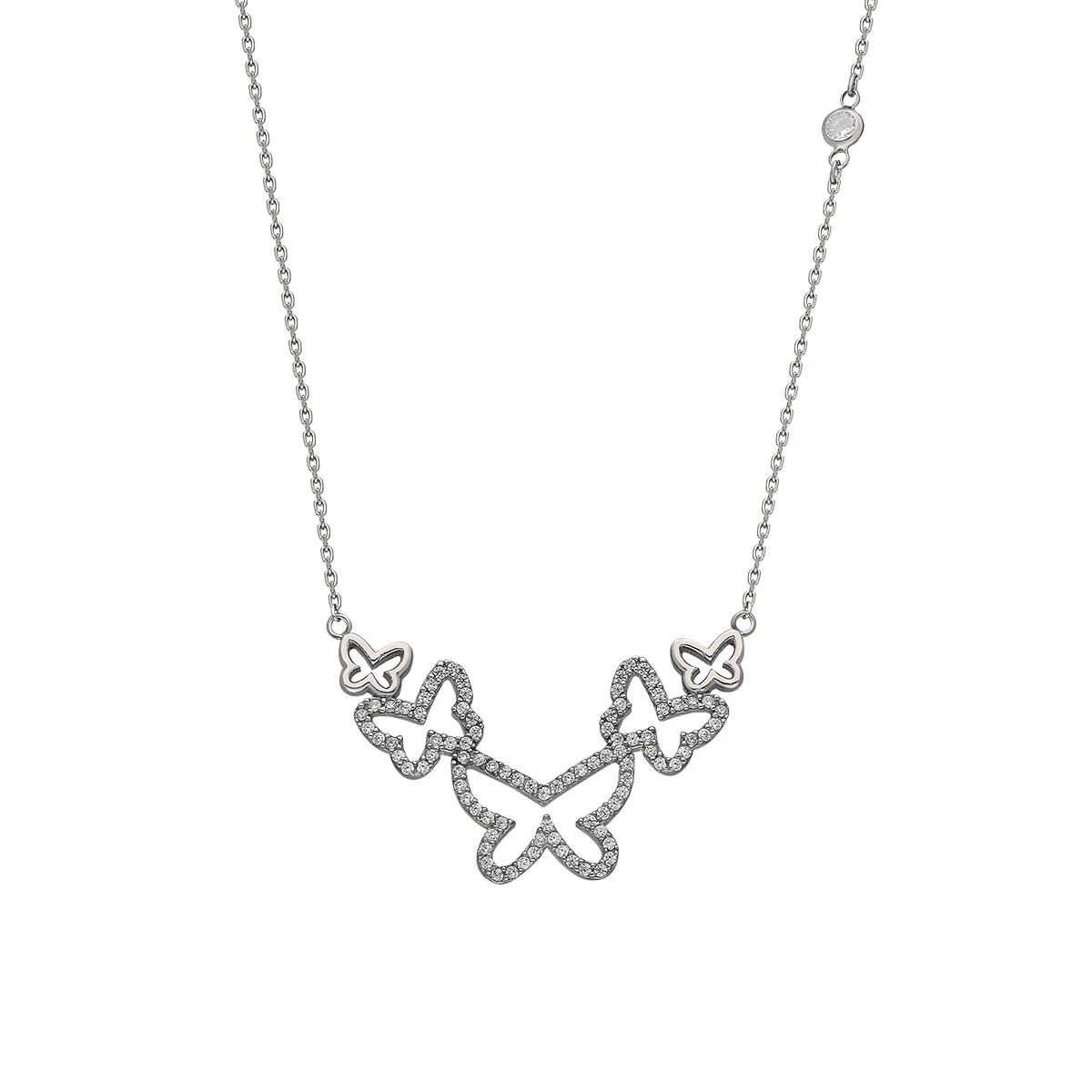 Needion - Kelebek Kolye Zirkon Taşlı Rodyum Kaplama 925 Ayar Gümüş