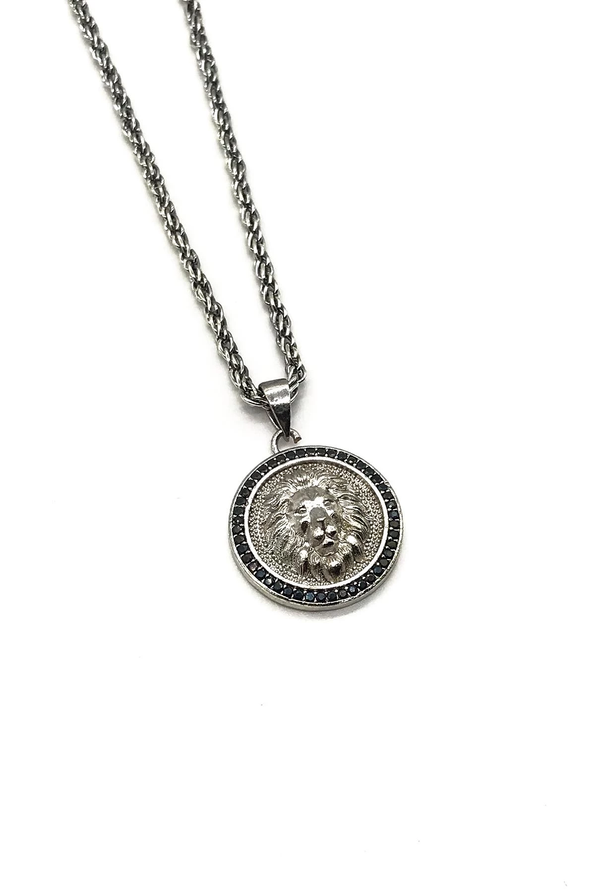 NOON Aslan Figürlü Zirkon Taşlı Gümüş Renkli Zincirli Erkek Kolye NN30417-517-A