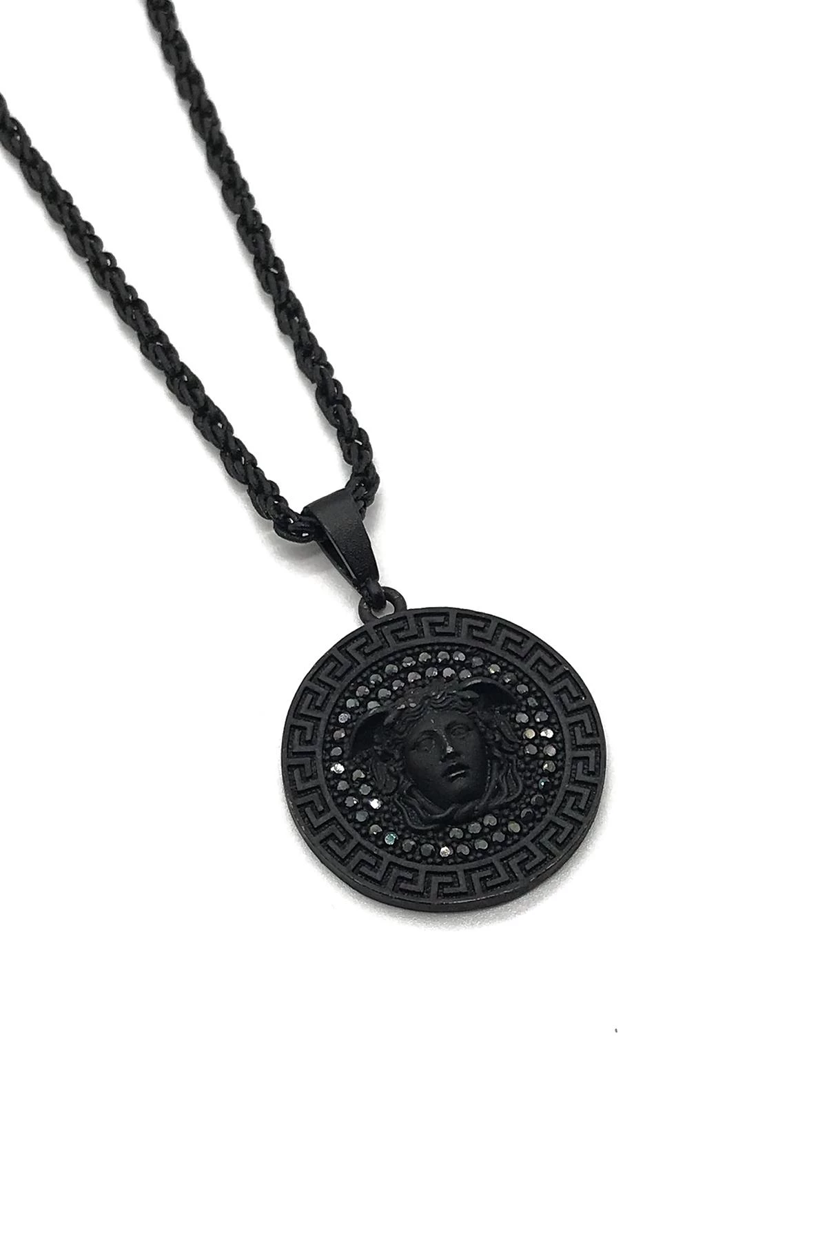 Needion - NOON Kadın Figürlü Siyah Zirkon Taşlı Mat Siyah Renkli Zincirli Erkek Kolye NN30429-529-B2