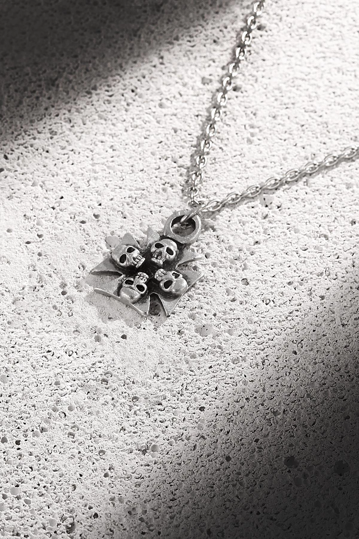 Needion - NOON Kurukafa Figürlü Gümüş Renk Zincirli Erkek Kolye NN3749