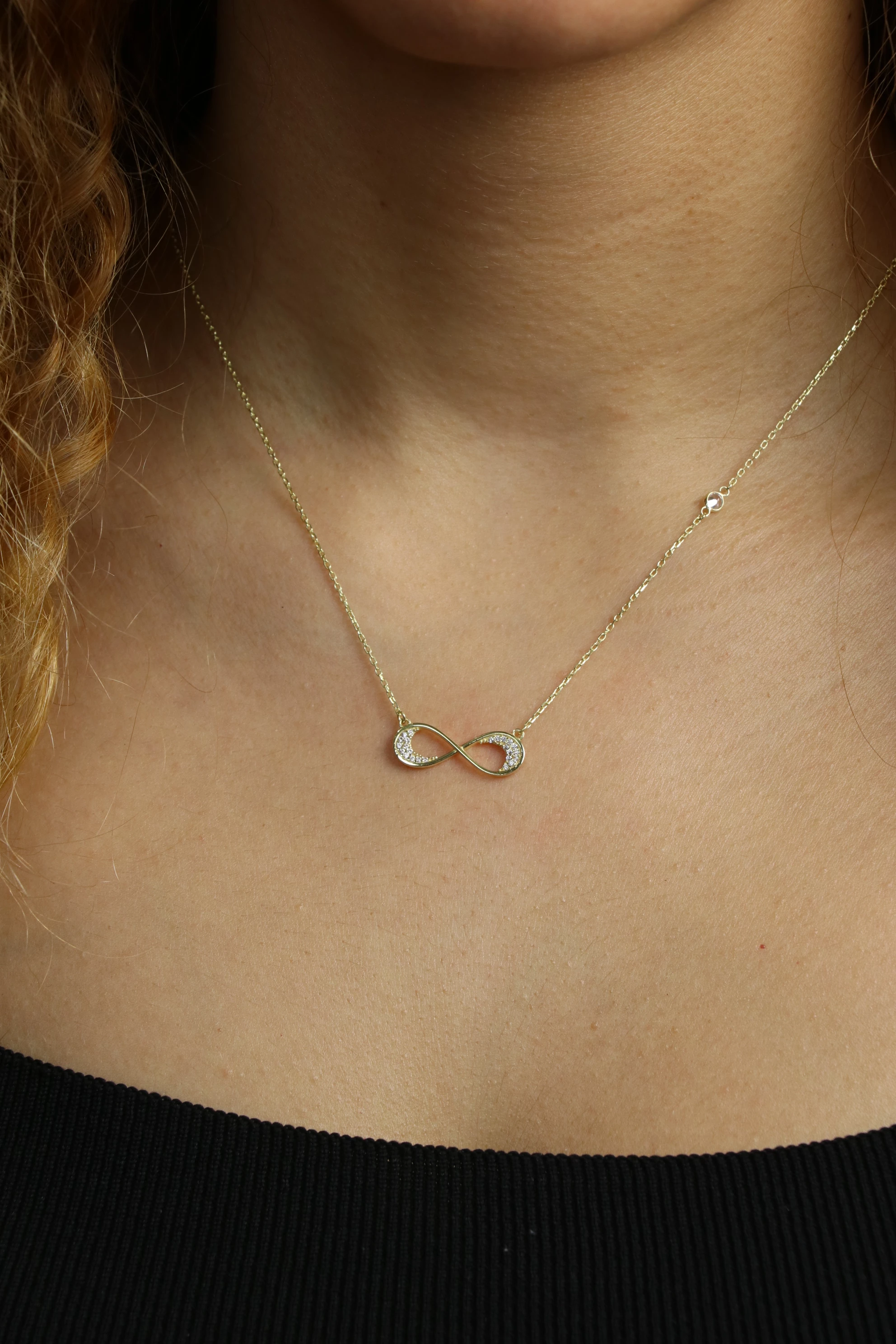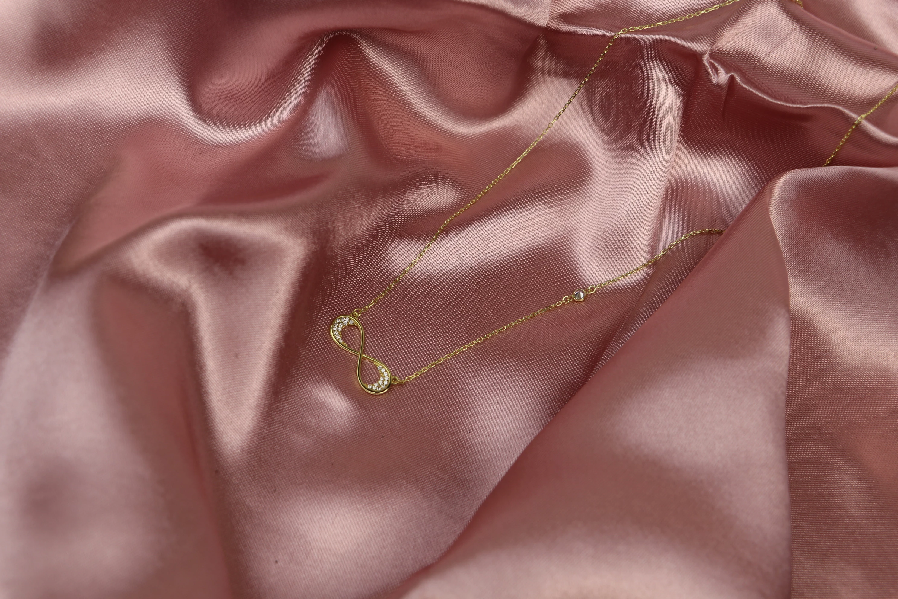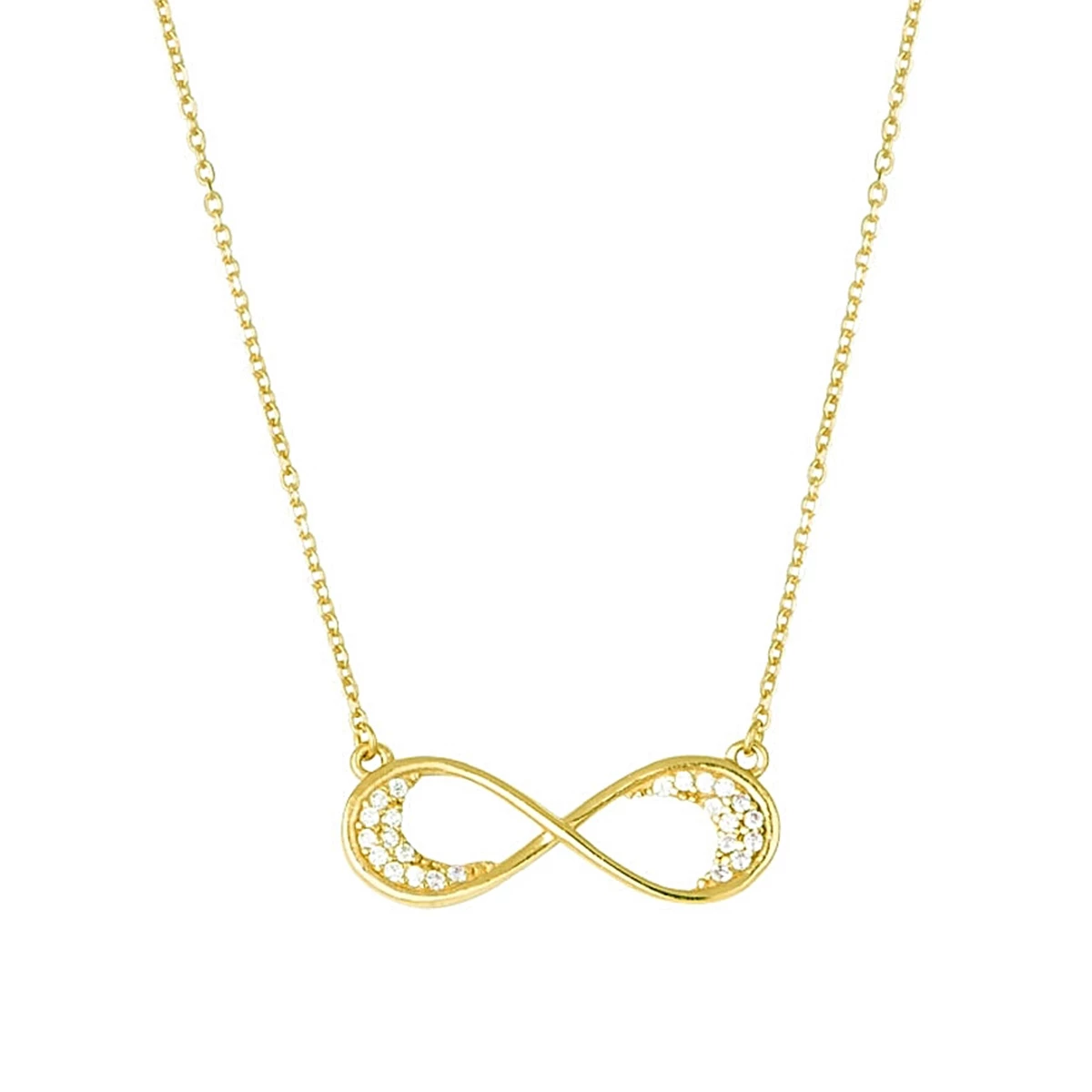 Sonsuzluk Tasarımlı Kolye Zirkon Taşlı Altın Kaplama 925 Ayar