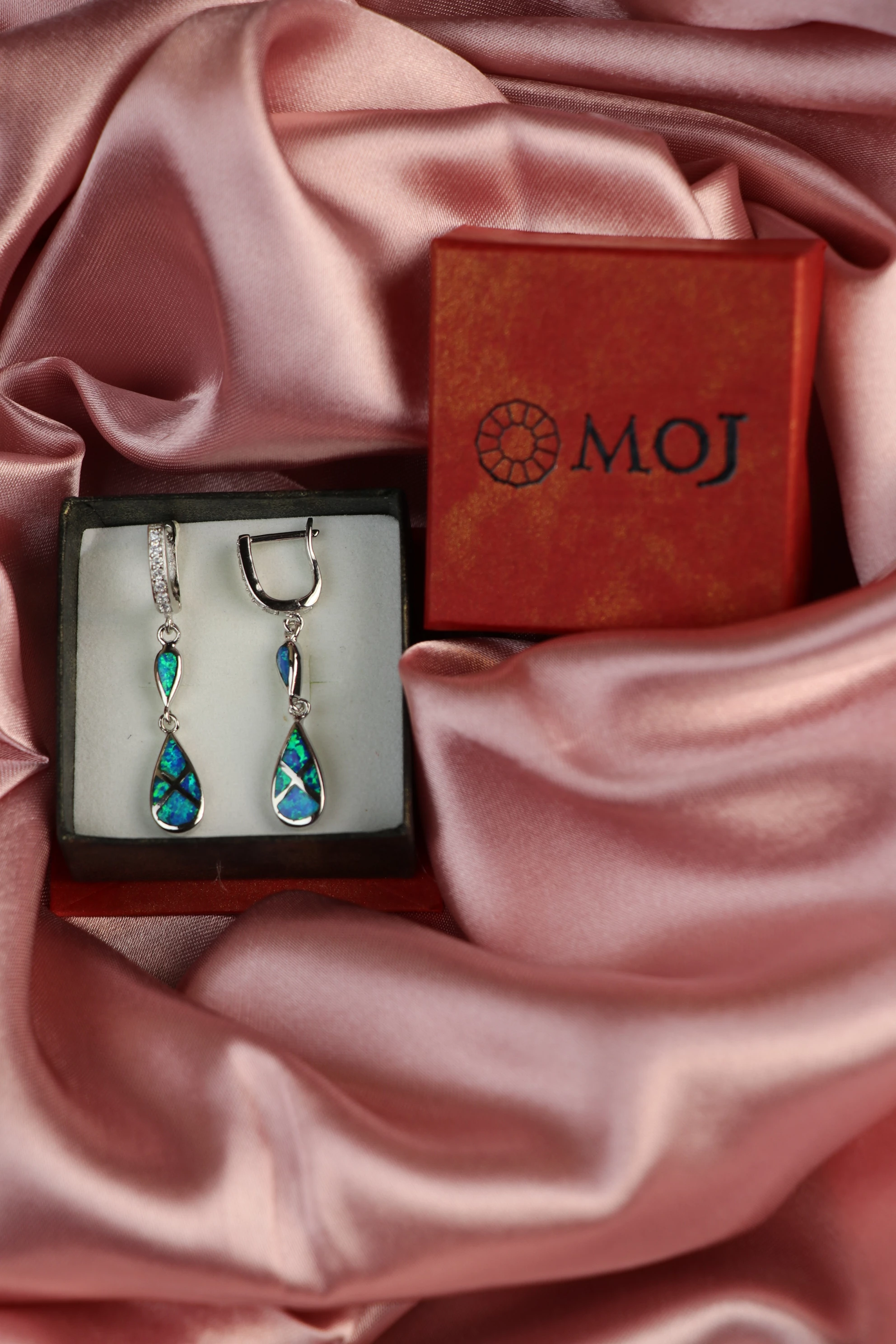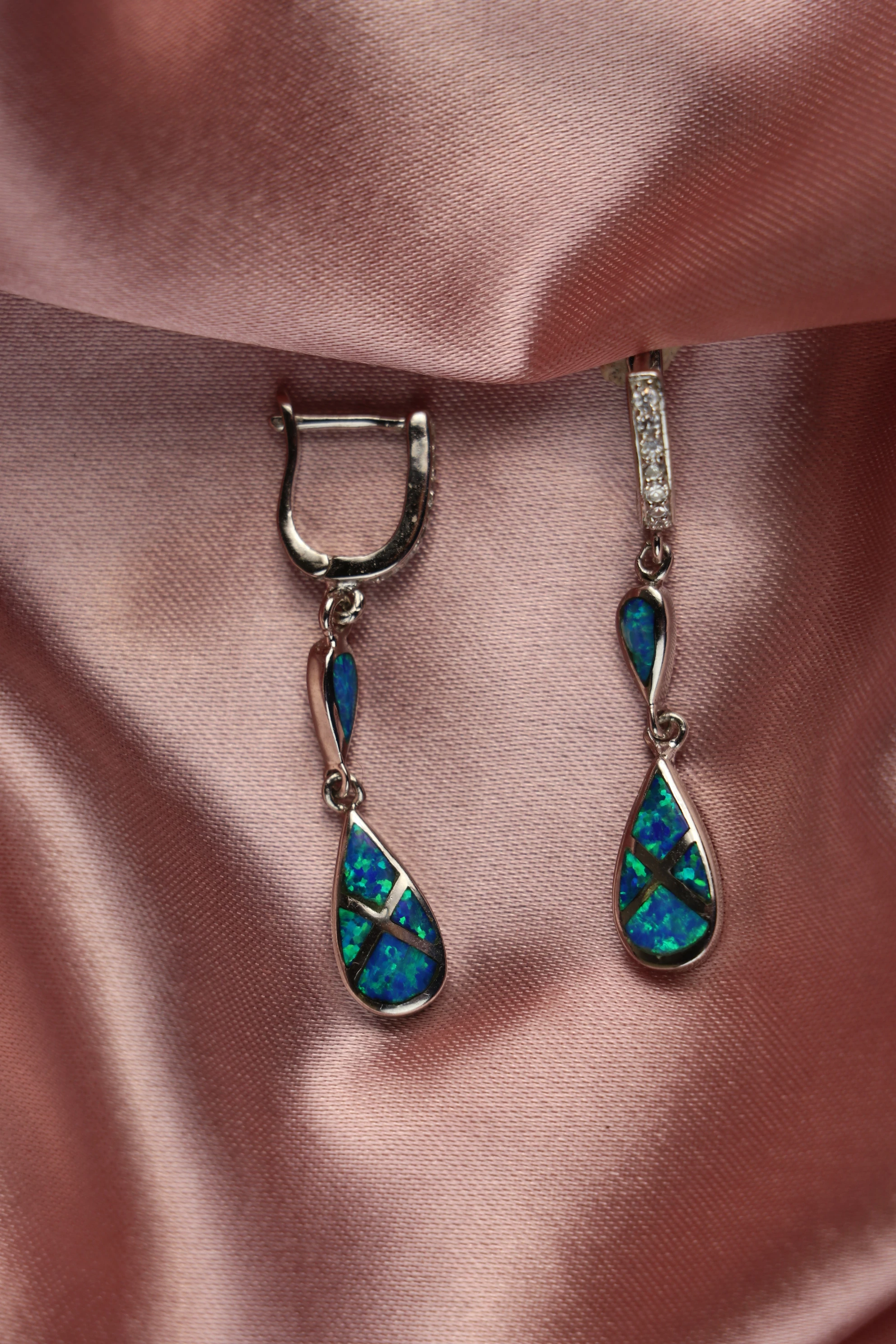 Orijinal Opal Taşlı Sallantılı Küpe 925 Ayar Gümüş