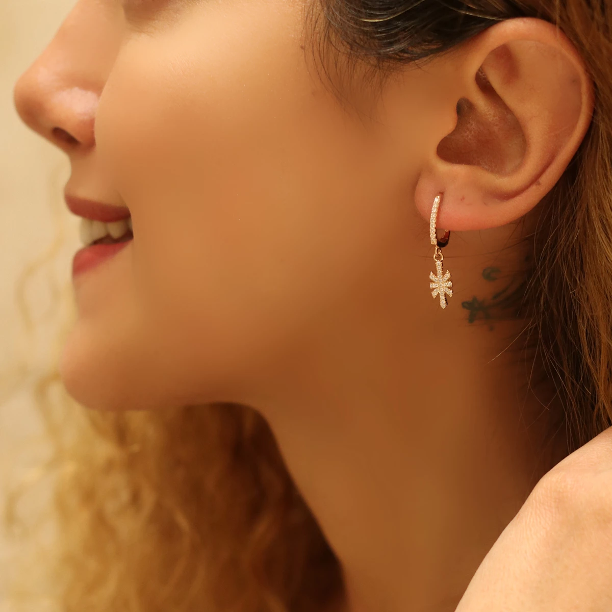 Needion - Özel Tasarım Küpe Zirkon Taşlı Rodyum Kaplama 925 Ayar Gümüş