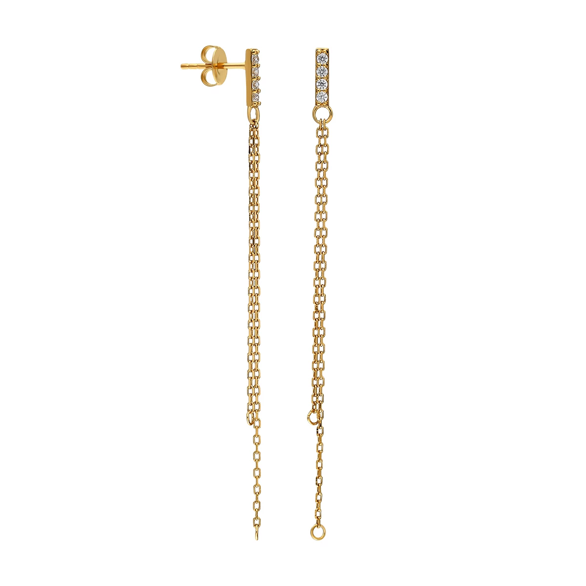 Needion - Zincir Sallantılı Küpe Zirkon Taşlı Altın Kaplama 925 Ayar Gümüş