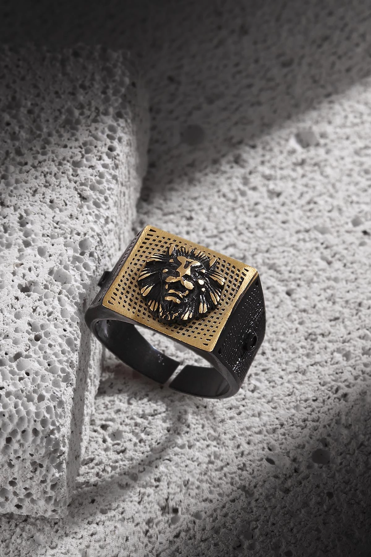 Needion - FRNCH Aslan Figürlü Kare Eskitme Ayarlanabilir Yüzük FRJ60024-124-B