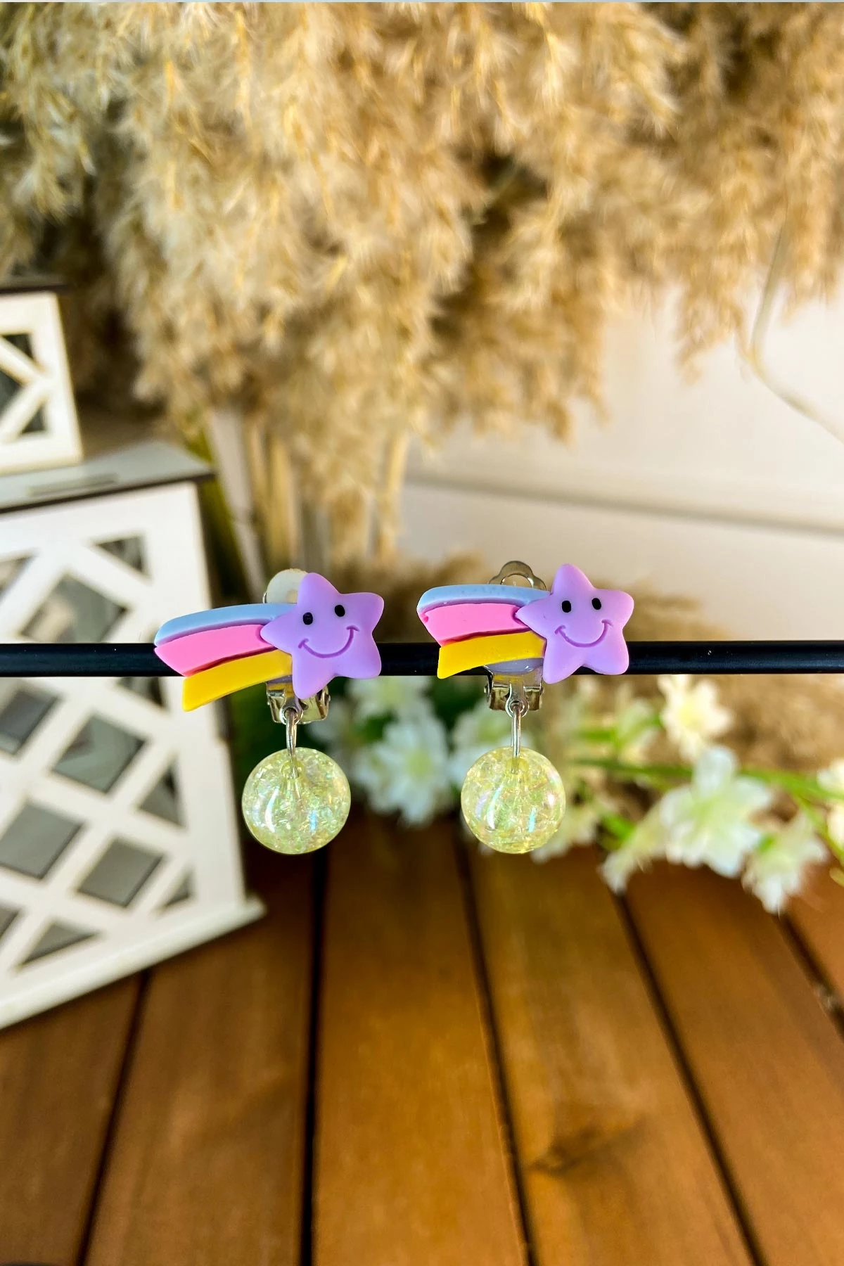 Çiftli Klipsli Figürlü Küpe Renkli Sarı SBT539