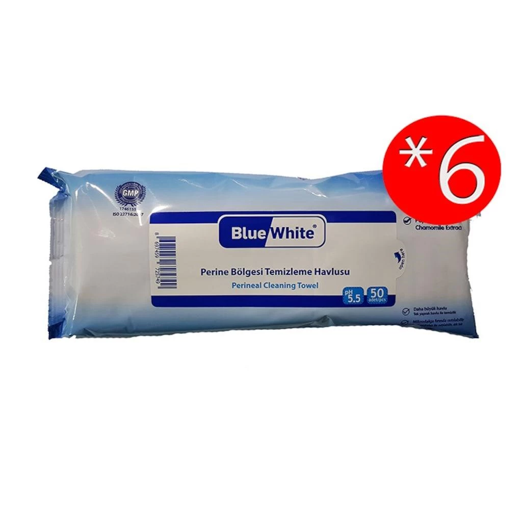 BlueWhite Hasta Vucüt Temizleme Mendili Havlusu 6 x 50 Yaprak