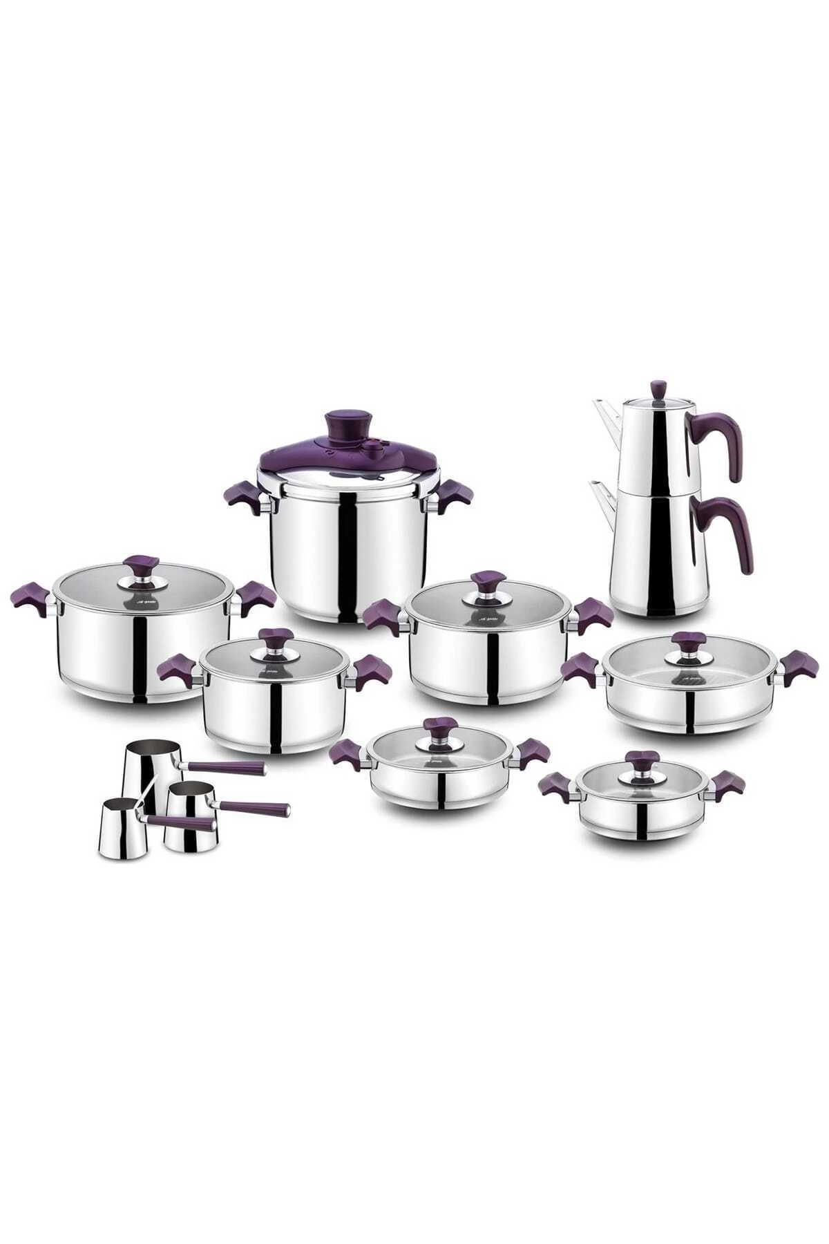 Aryıldız King Cam İdeal 22 Parça Mor Tencere Takımı