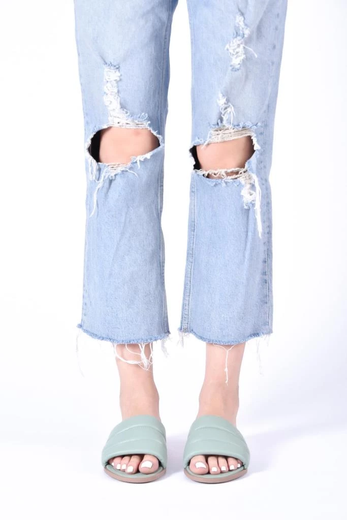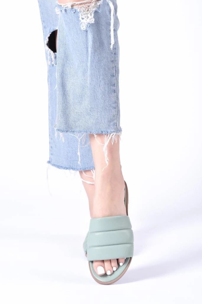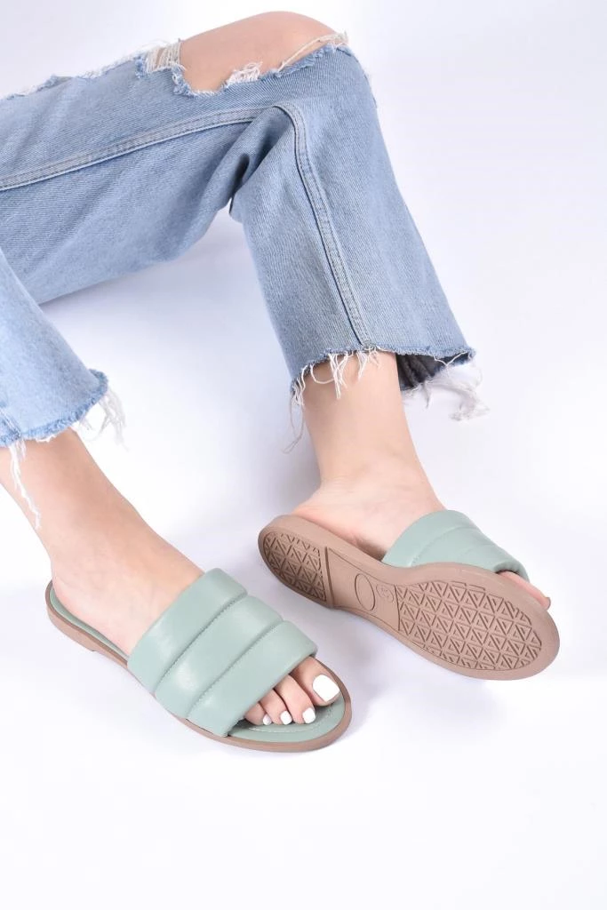 Bayan Mint Dikiş Detaylı Düz Terlik MİNT 36