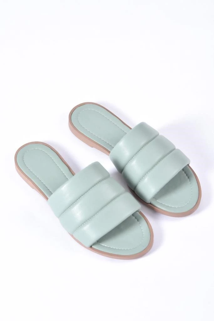 Needion - Bayan Mint Dikiş Detaylı Düz Terlik MİNT 36