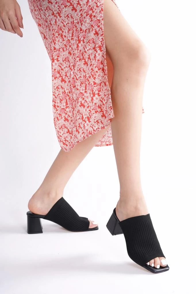 Needion - Bayan Siyah Alçak Topuk Triko Terlik SİYAH 37