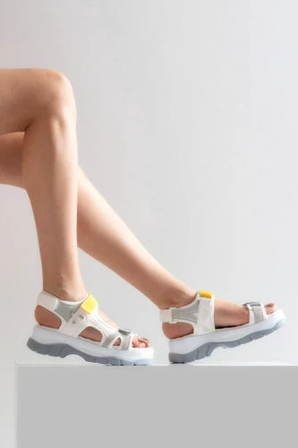Needion - Kadın Dolgu Topuk Sandalet BEYAZ GRI HSN2124740 BEYAZ GRI 36