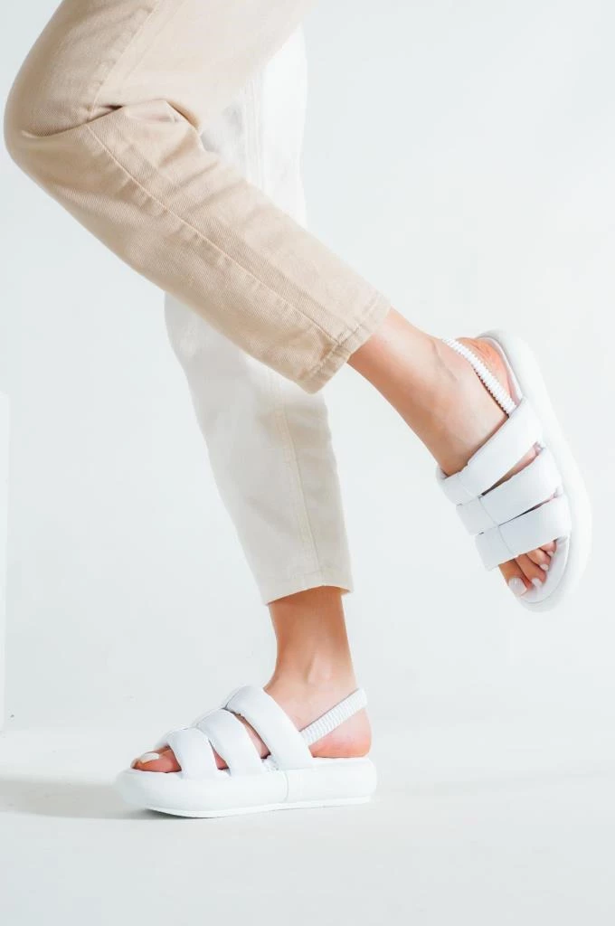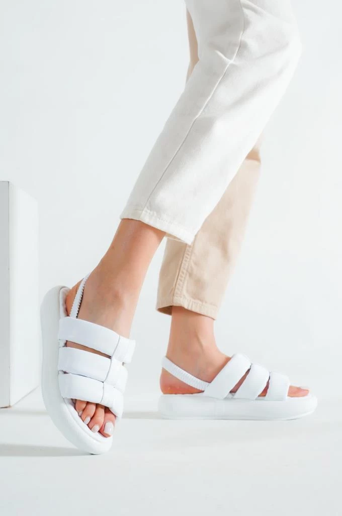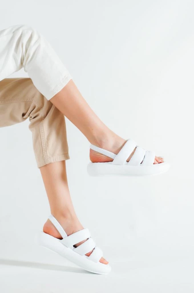 Kadın Many Beyaz 3 Bant Lastikli Bilekten Bağlama Terlik&sandalet M105